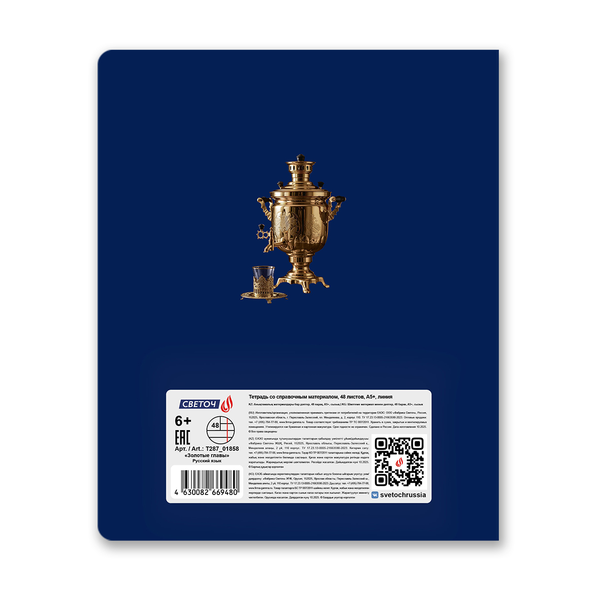 Тетрадь со справочным материалом Золотые главы, тисн.золот.фольгой, A5 48 л. на скобе 65 г/м², белизна 100% 10 шт линия, 01858 Золотые главы Русский язык, Светоч Т287
