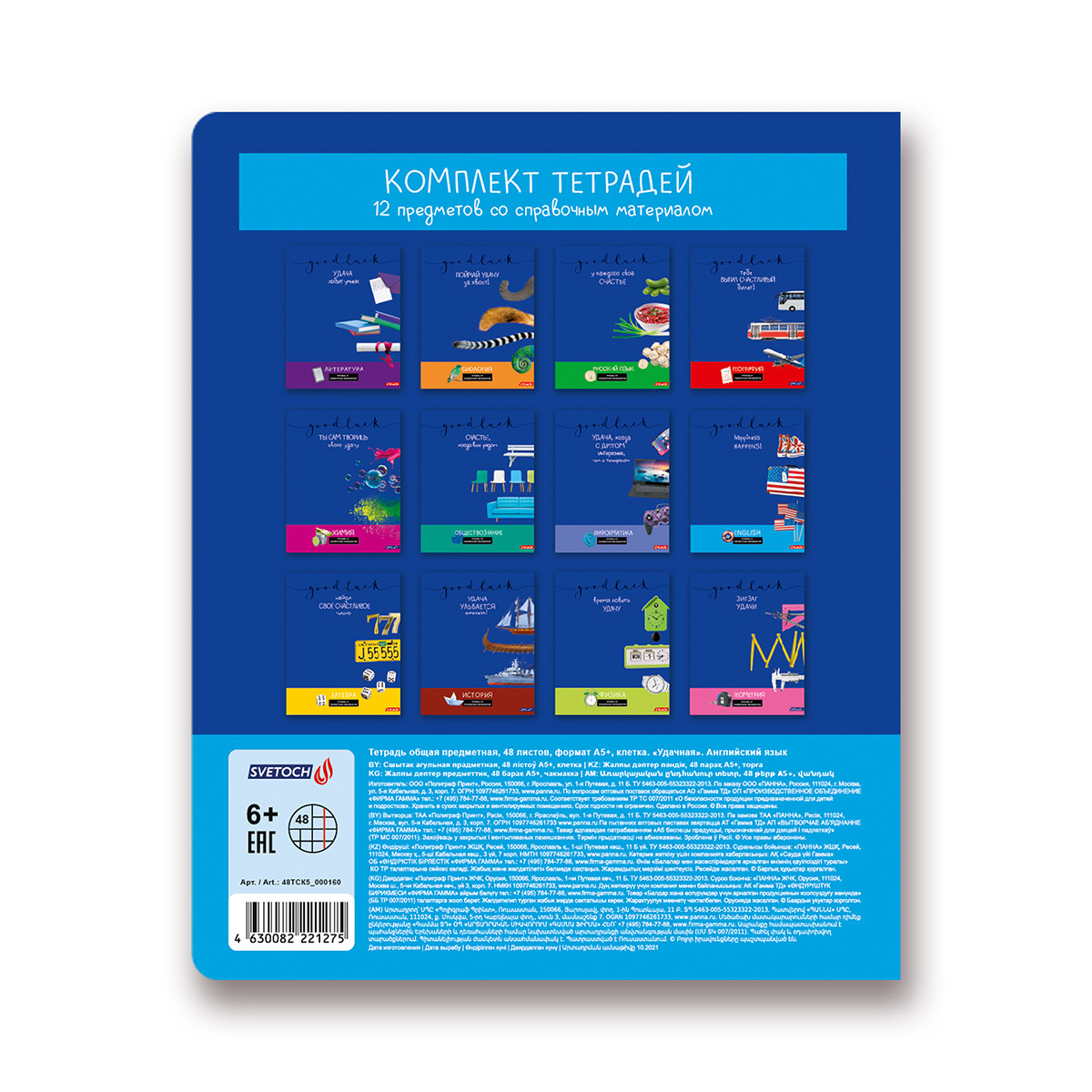 Тетрадь предметная Удачная A5+ 48 л. на скобе, 10 шт, клетка, Английский язык 48ТСК5 000160, Светоч