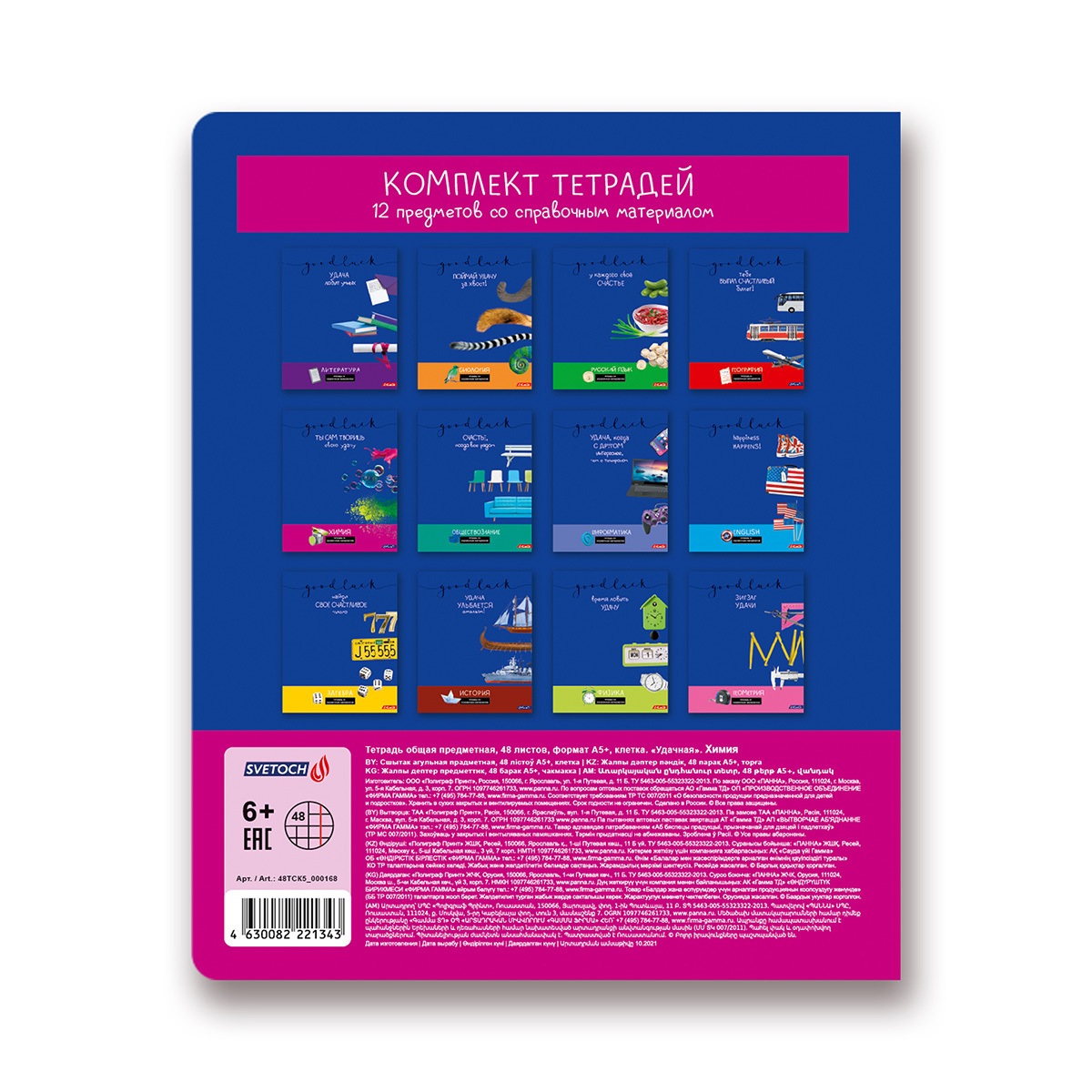 Тетрадь предметная Удачная A5+ 48 л. на скобе, 10 шт, клетка, Химия 48ТСК5 000168, Светоч