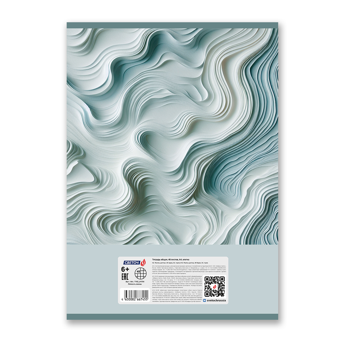 Тетрадь ученическая общая, A4 48 л. на скобе 65 г/м², белизна 100% 6 шт клетка, 01754 Лёгкость весны, Светоч Т152