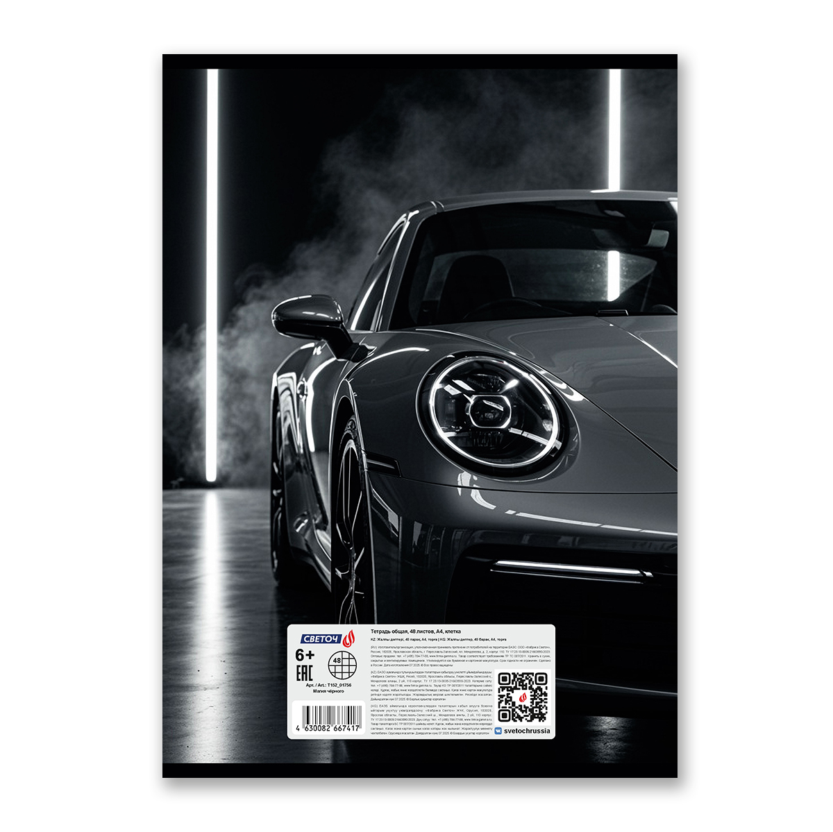 Тетрадь ученическая общая, A4 48 л. на скобе 65 г/м², белизна 100% 6 шт клетка, 01756 Магия чёрного, Светоч Т152