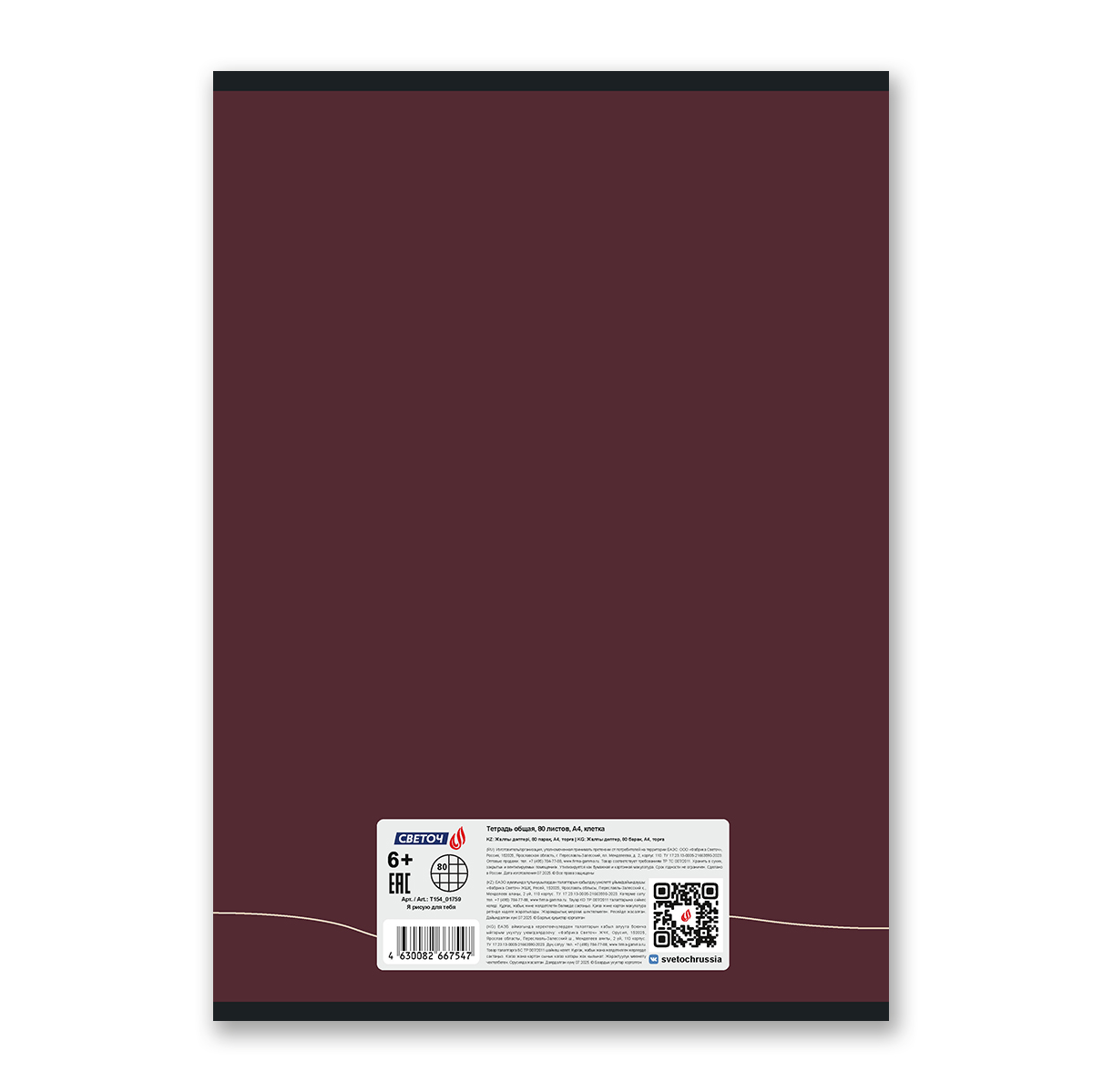 Тетрадь ученическая общая, A4 80 л. на скобе 65 г/м², белизна 100% 6 шт клетка, 01759 Я рисую для тебя, Светоч Т154