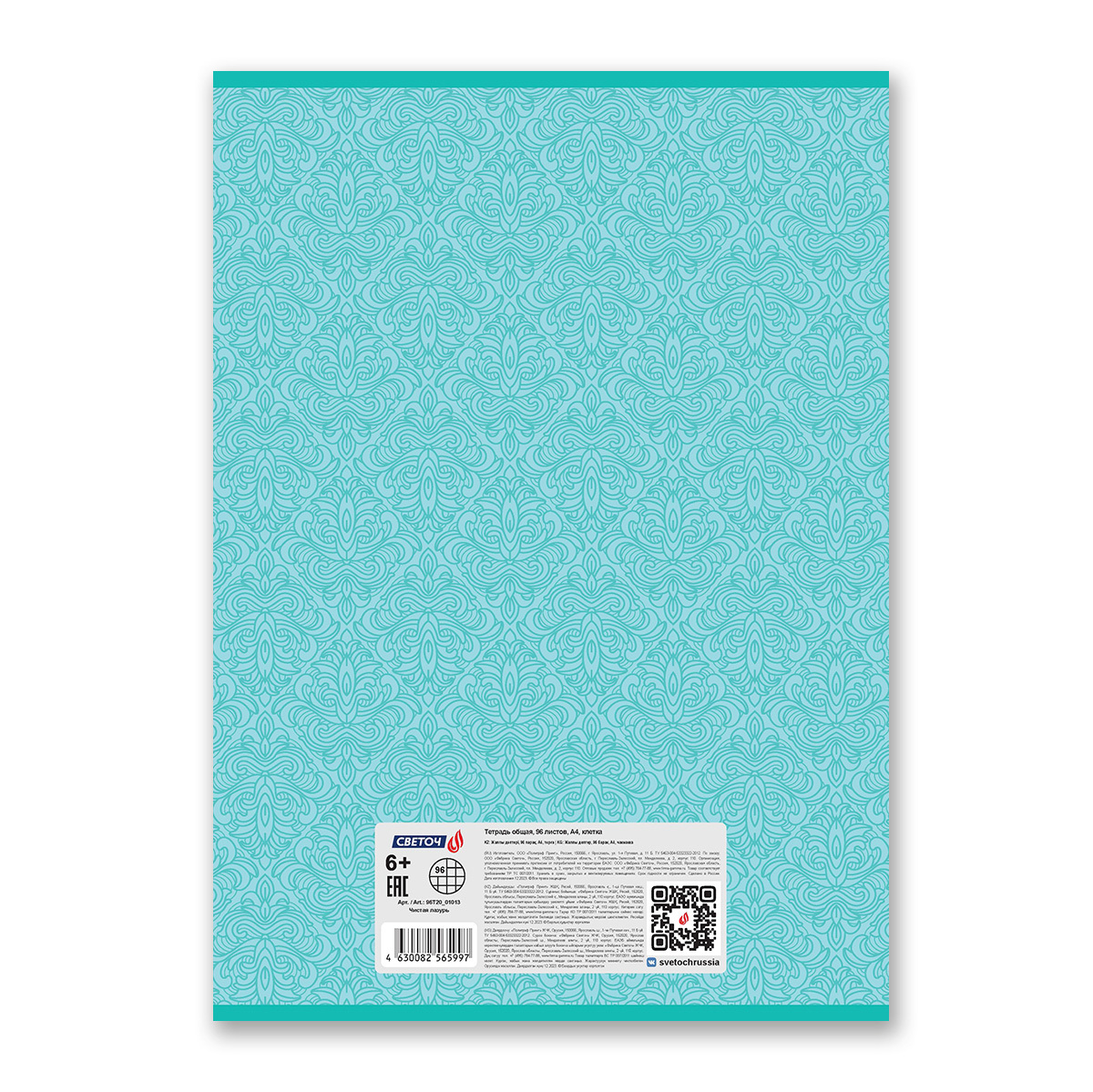 Тетрадь ученическая общая, A4 96 л. на скобе 65 г/м², белизна 100 %, 6 шт, клетка, 01013 Чистая лазурь, Светоч 96Т20