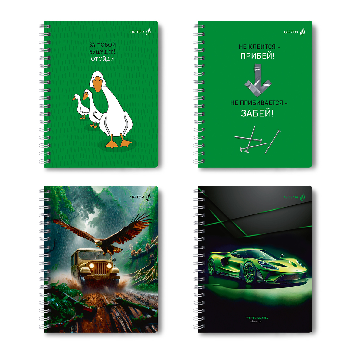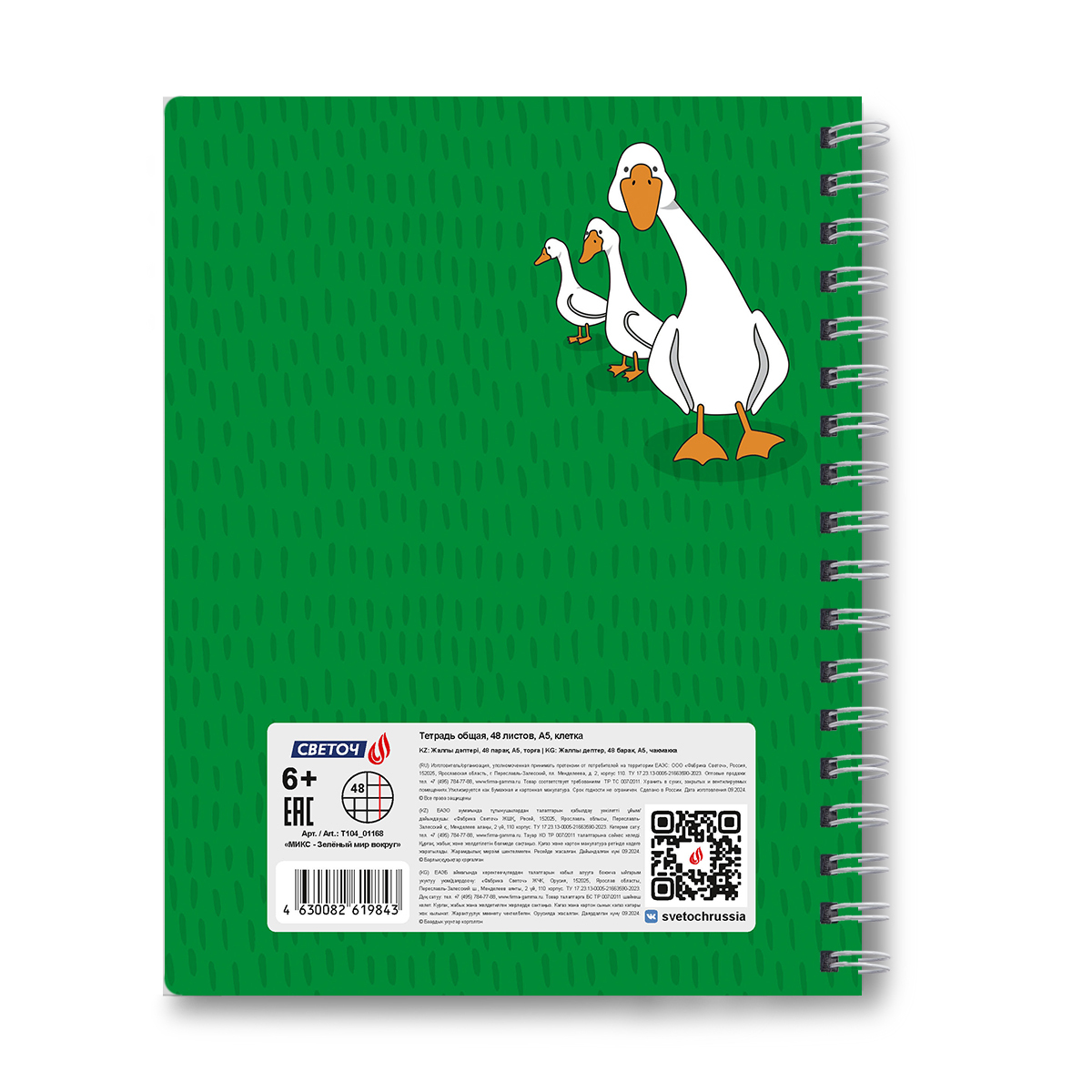 Тетрадь ученическая общая, A5 48 л. на гребне 60 г/м², белизна 90 %, 8 шт, клетка, 01168 МИКС - Зелёный мир вокруг, Светоч Т104