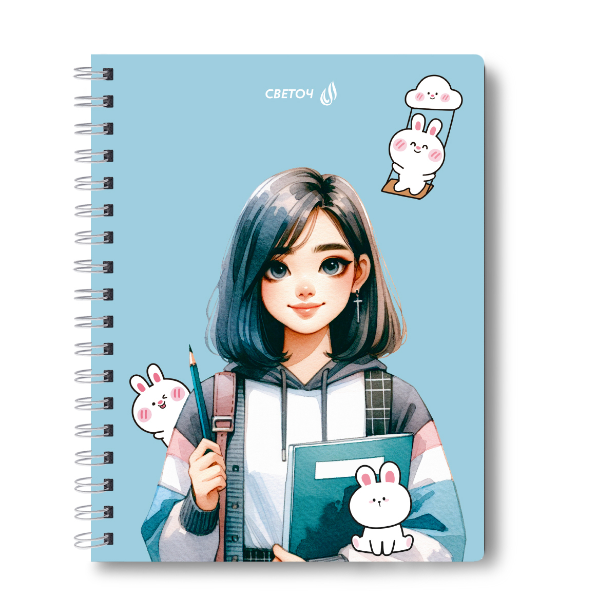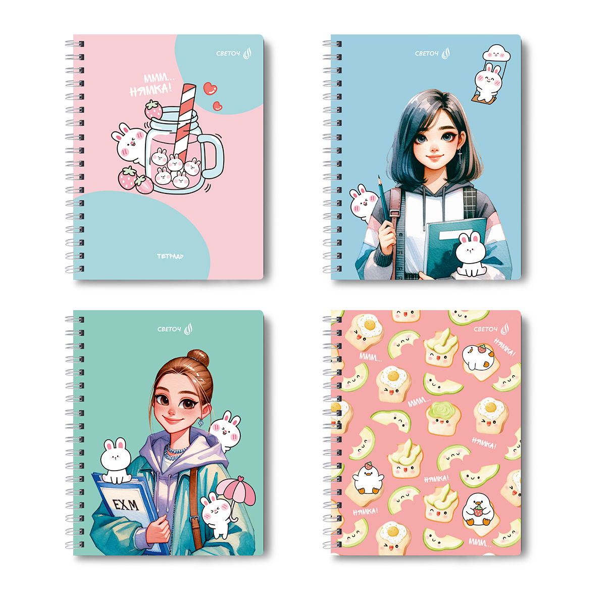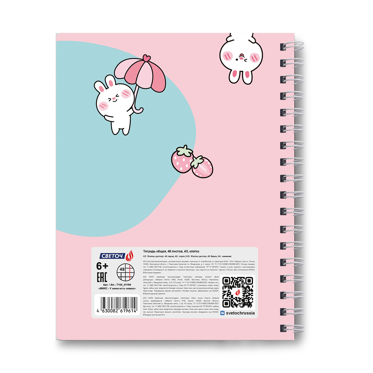 Тетрадь ученическая общая, A5 48 л. на гребне 60 г/м², белизна 90 %, 8 шт, клетка, 01169 МИКС - У меня есть сквиш, Светоч Т104