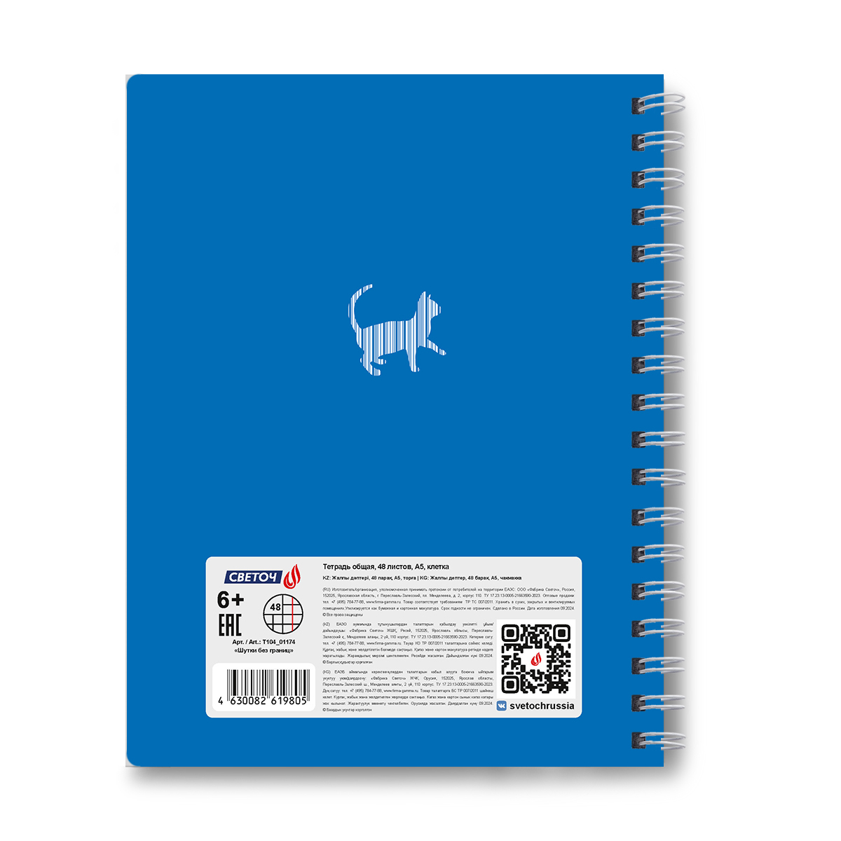 Тетрадь ученическая общая, A5 48 л. на гребне 60 г/м², белизна 90 %, 8 шт, клетка, 01174 Шутки без границ, Светоч Т104