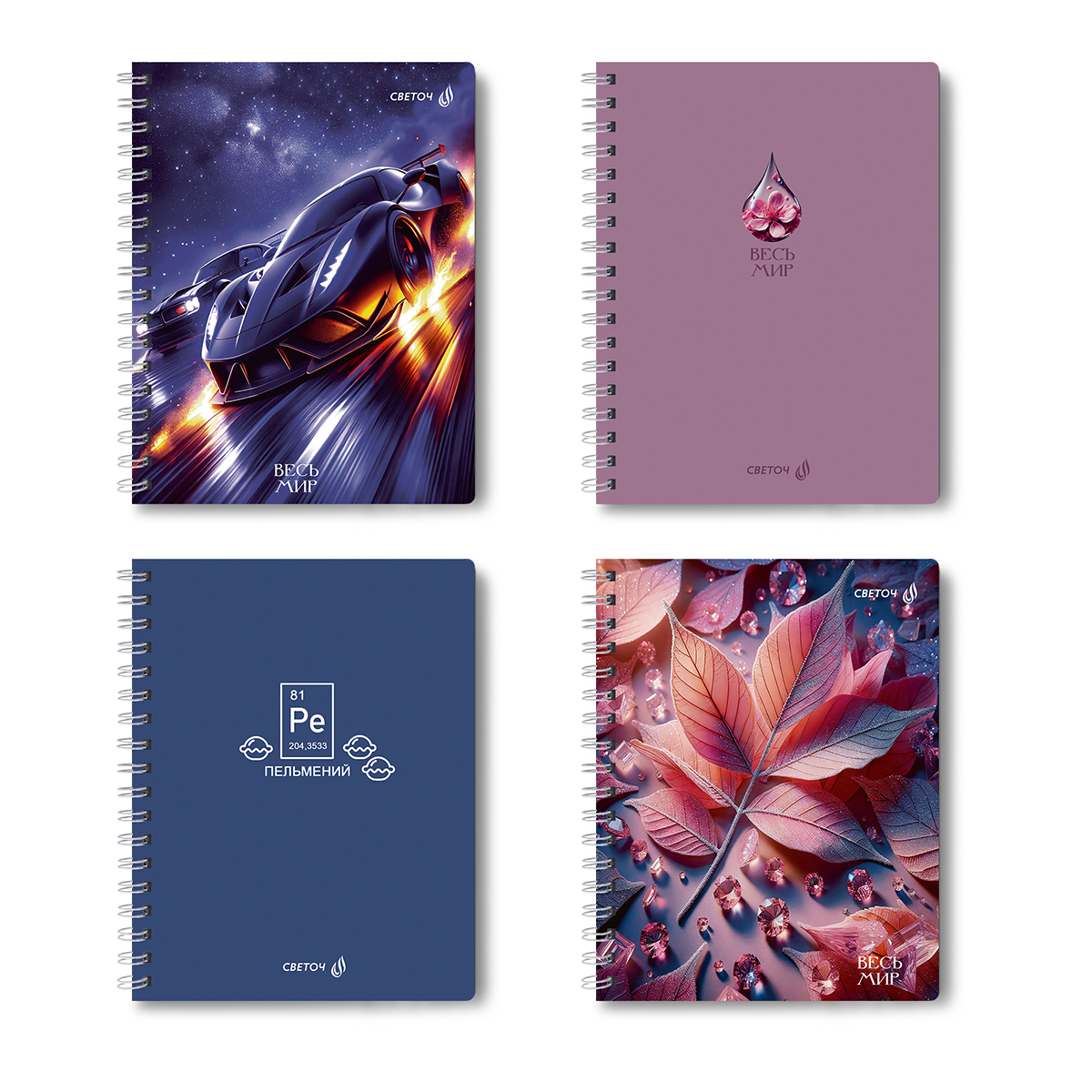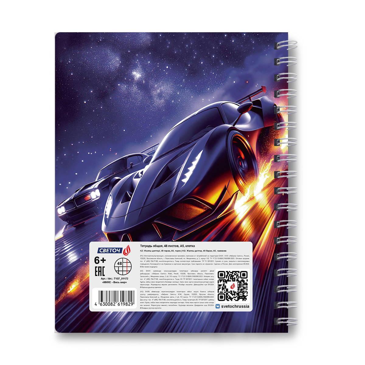 Тетрадь ученическая общая, A5 48 л. на гребне 65 г/м², белизна 100 %, 8 шт, клетка, 01172 МИКС - Весь мир, Светоч Т107