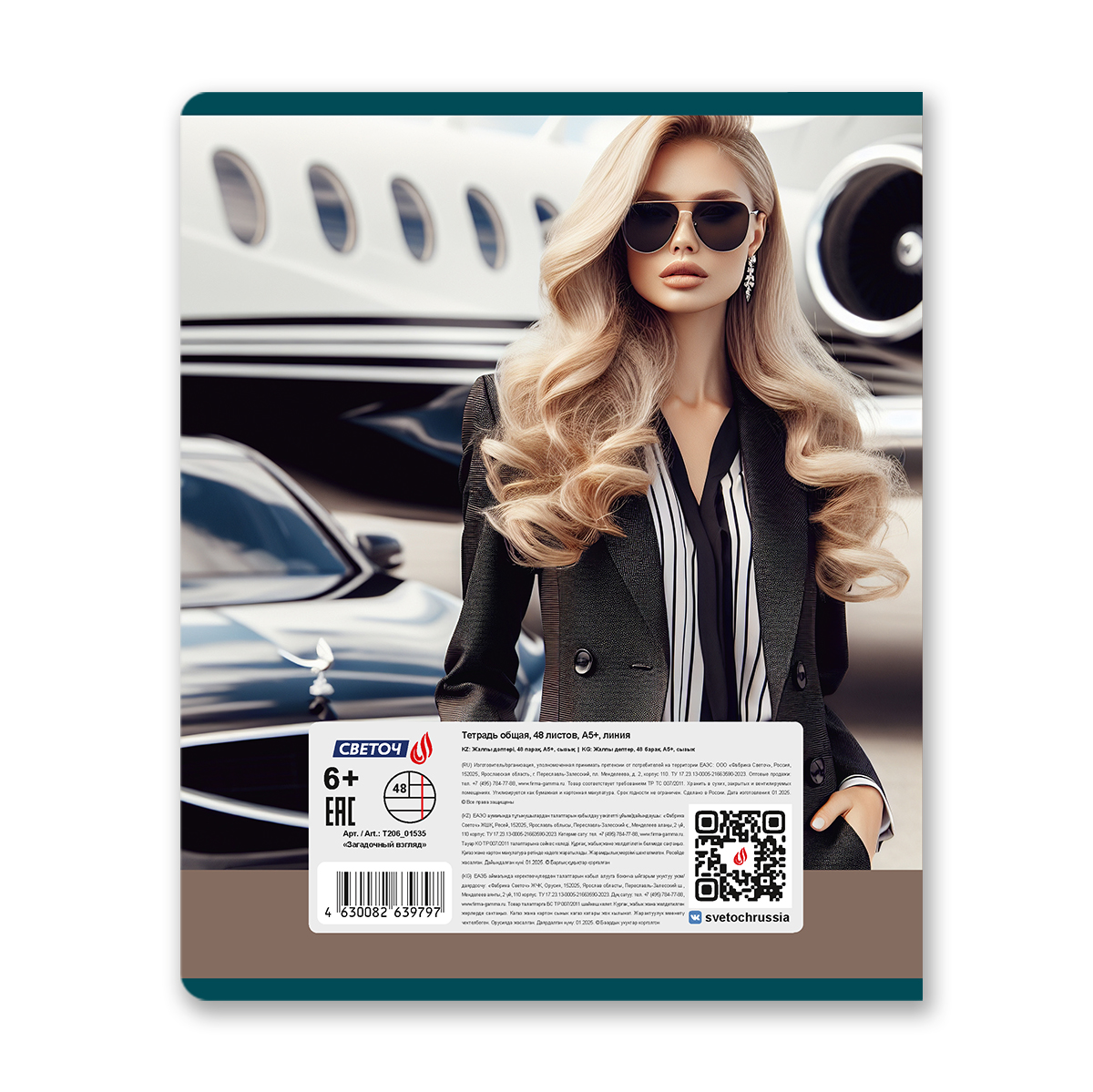 Внутренний блок изготовлен из качественной офсетной бумаги плотностью 65 г/кв. м, 100% белизны, обложка из мелованного картона плотностью 190 г/кв. м.