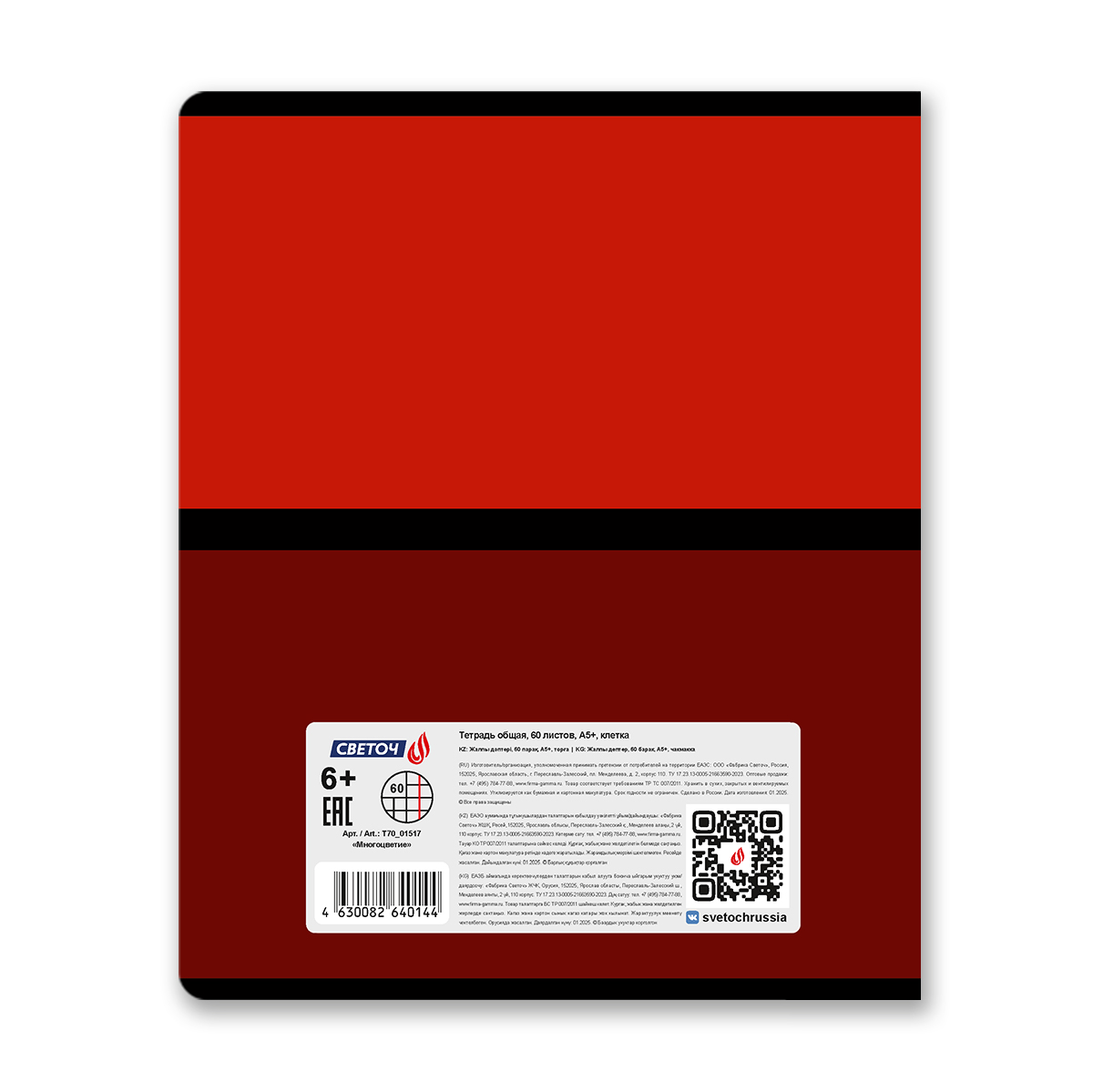 Тетрадь ученическая общая A5 60 л. на скобе 65 г/м², белизна 100% 10 шт клетка, 01517 Многоцветие, Светоч Т70