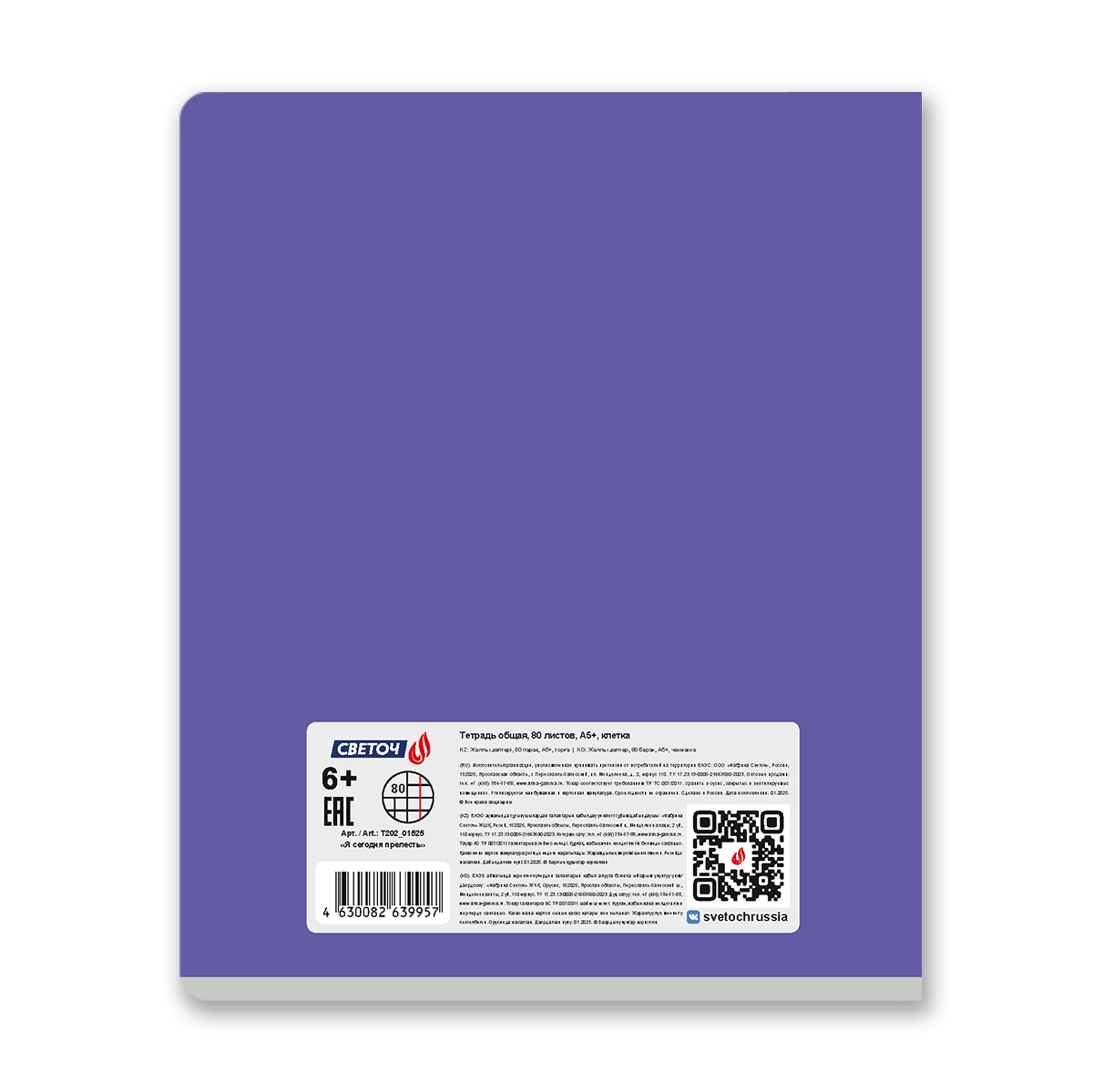 Тетрадь общая А5 формата, 80 листов предназначена для учащихся средних и старших классов, учащихся вузов, а так же прекрасно подойдет для дома и офиса. Внутренний блок изготовлен из качественной офсетной бумаги плотностью 65 г/кв. м, 100% белизны, обложка из мелованного картона плотностью 190 г/кв. м.