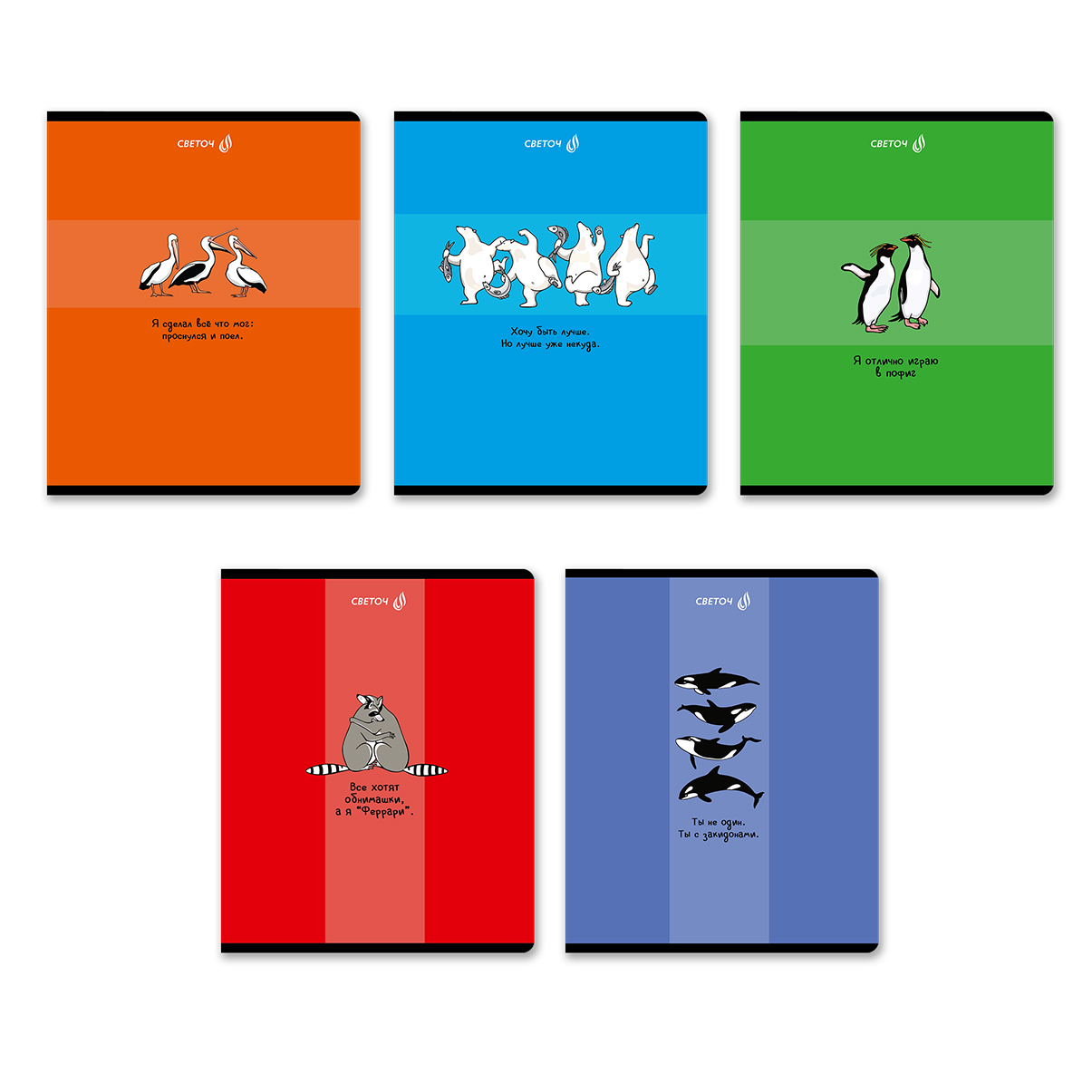 Тетрадь ученическая общая, A5 96 л. на скобе 65 г/м², белизна 100% 5 шт клетка, 01530 Море позитива, Светоч Т91