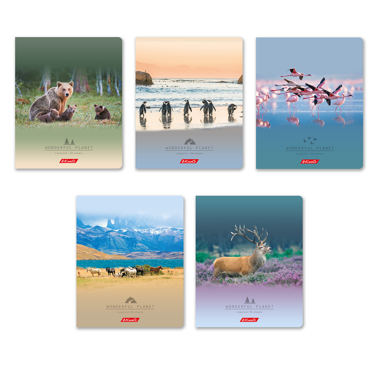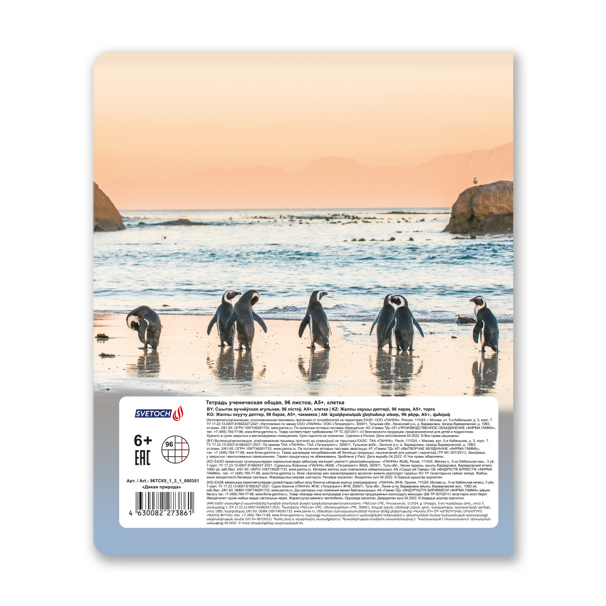 Тетрадь ученическая общая, A5+ 96 л. на скобе, белизна 100%, 5 шт, клетка, 000351 Дикая природа, Светоч 96ТСК5_1_3_1