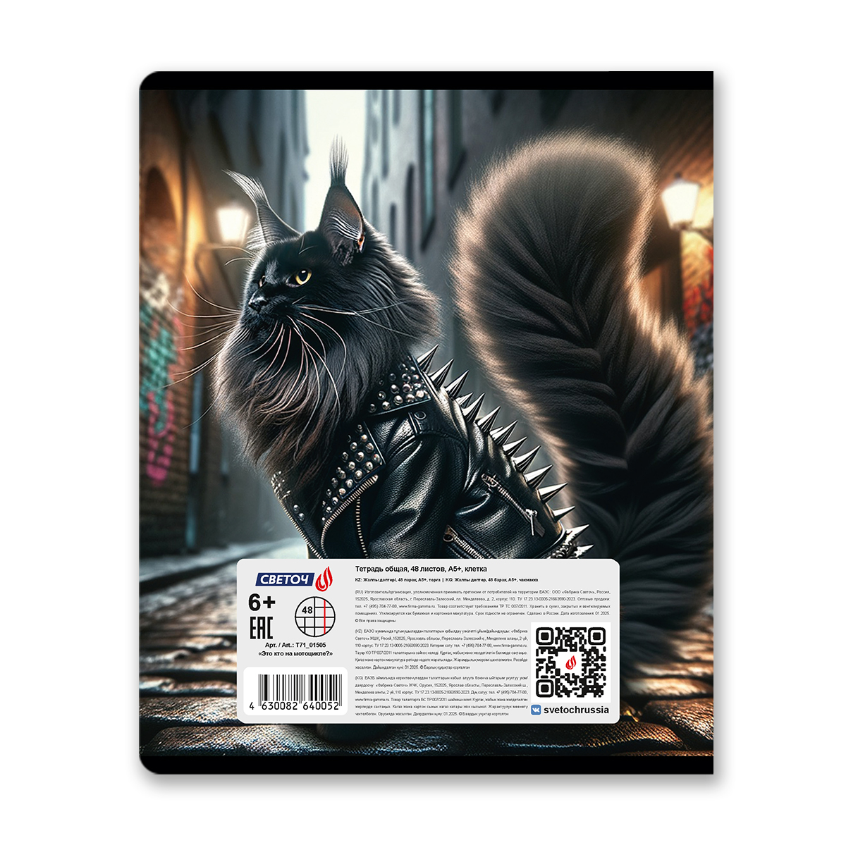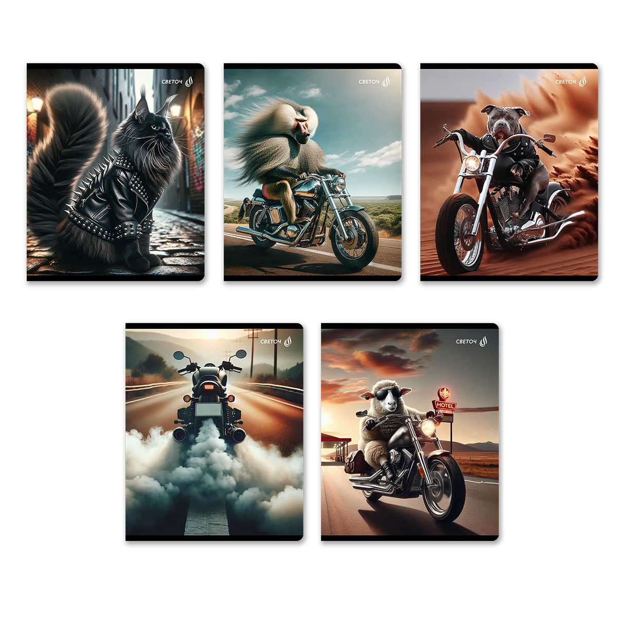 Тетрадь ученическая общая, глянцевая ламинация A5 48 л. на скобе 65 г/м², белизна 100% 10 шт клетка, 01505 Это кто на мотоцикле?, Светоч Т71