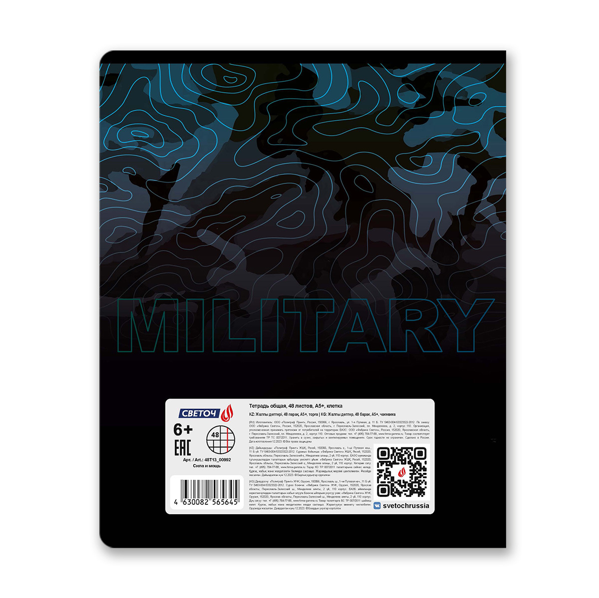 Тетрадь ученическая общая, матовая ламинация, A5+ 48 л. на скобе 65 г/м², белизна 100 %, 10 шт, клетка, 00992 Сила и мощь, Светоч 48Т13