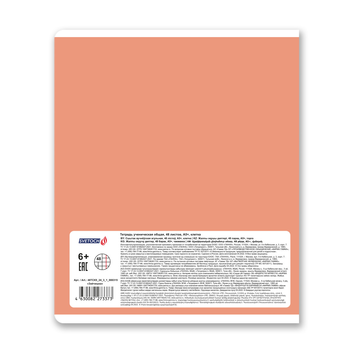 Тетрадь ученическая общая, матовая ламинация + выборочный УФ лак, A5+ 48 л. на скобе, белизна 100%, 10 шт, клетка, 000315 Зайчишка, Светоч 48ТСК5_24_3_1