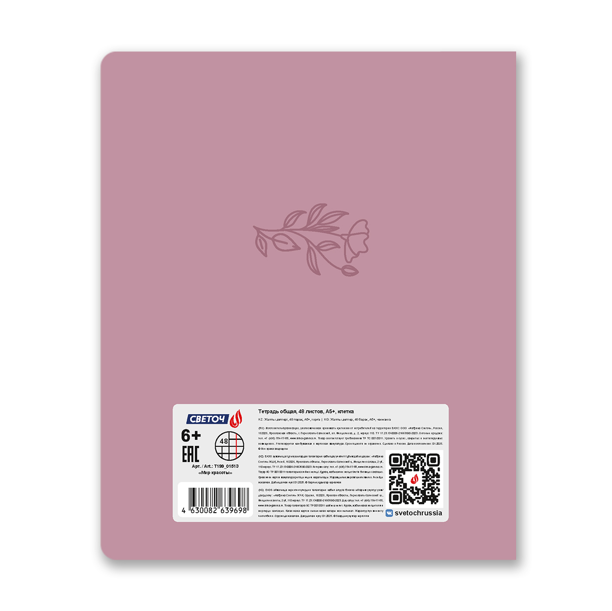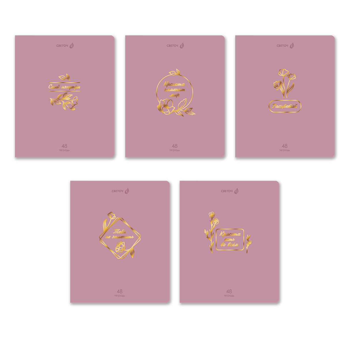 Тетрадь ученическая общая, тиснение золотой фольгой, A5 48 л. на скобе 65 г/м², белизна 100% 10 шт клетка, 01513 Мир красоты, Светоч Т199