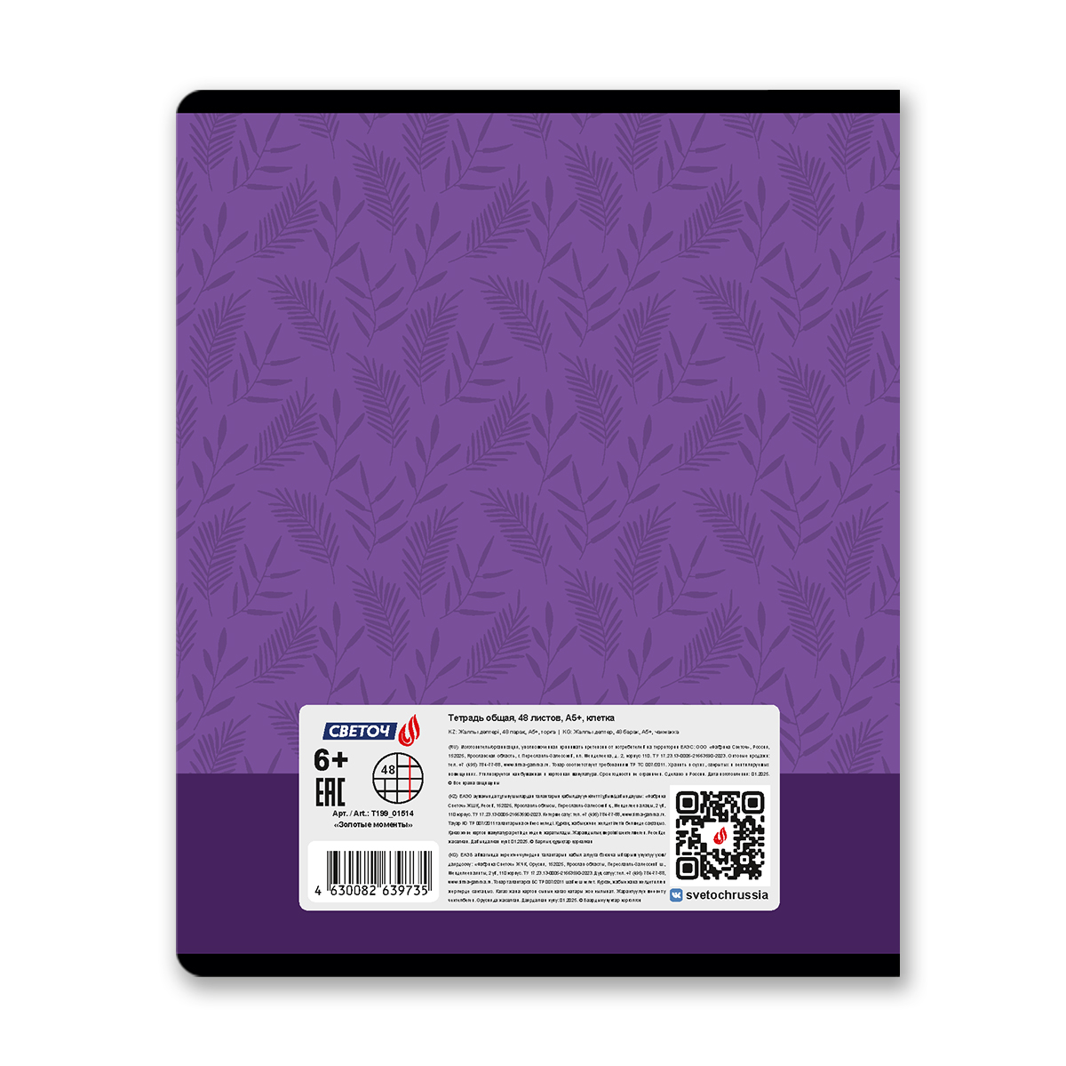 Тетрадь ученическая общая, тиснение золотой фольгой, A5 48 л. на скобе 65 г/м², белизна 100% 10 шт клетка, 01514 Золотые моменты, Светоч Т199