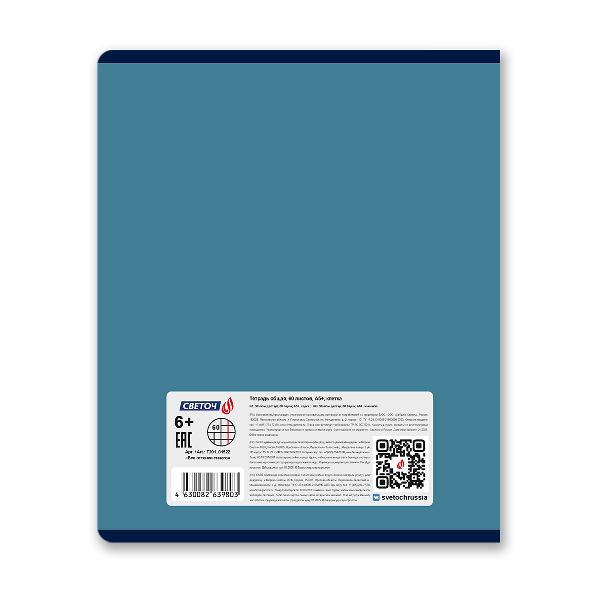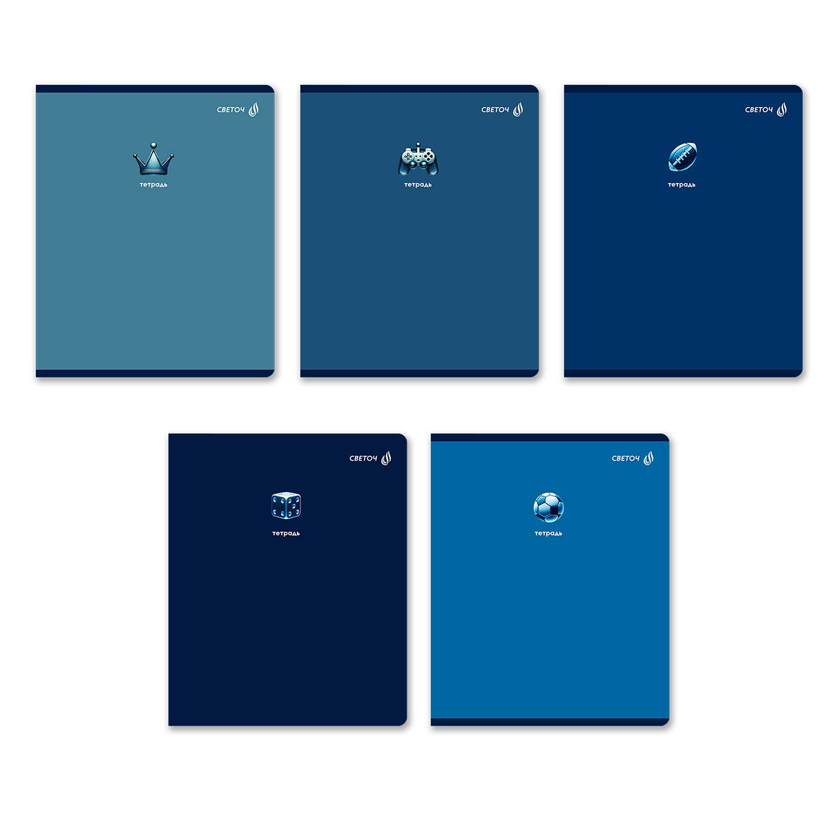 Тетрадь ученическая общая, твин лак A5 60 л. на скобе 65 г/м², белизна 100% 10 шт клетка, 01522 Все оттенки синего, Светоч Т201