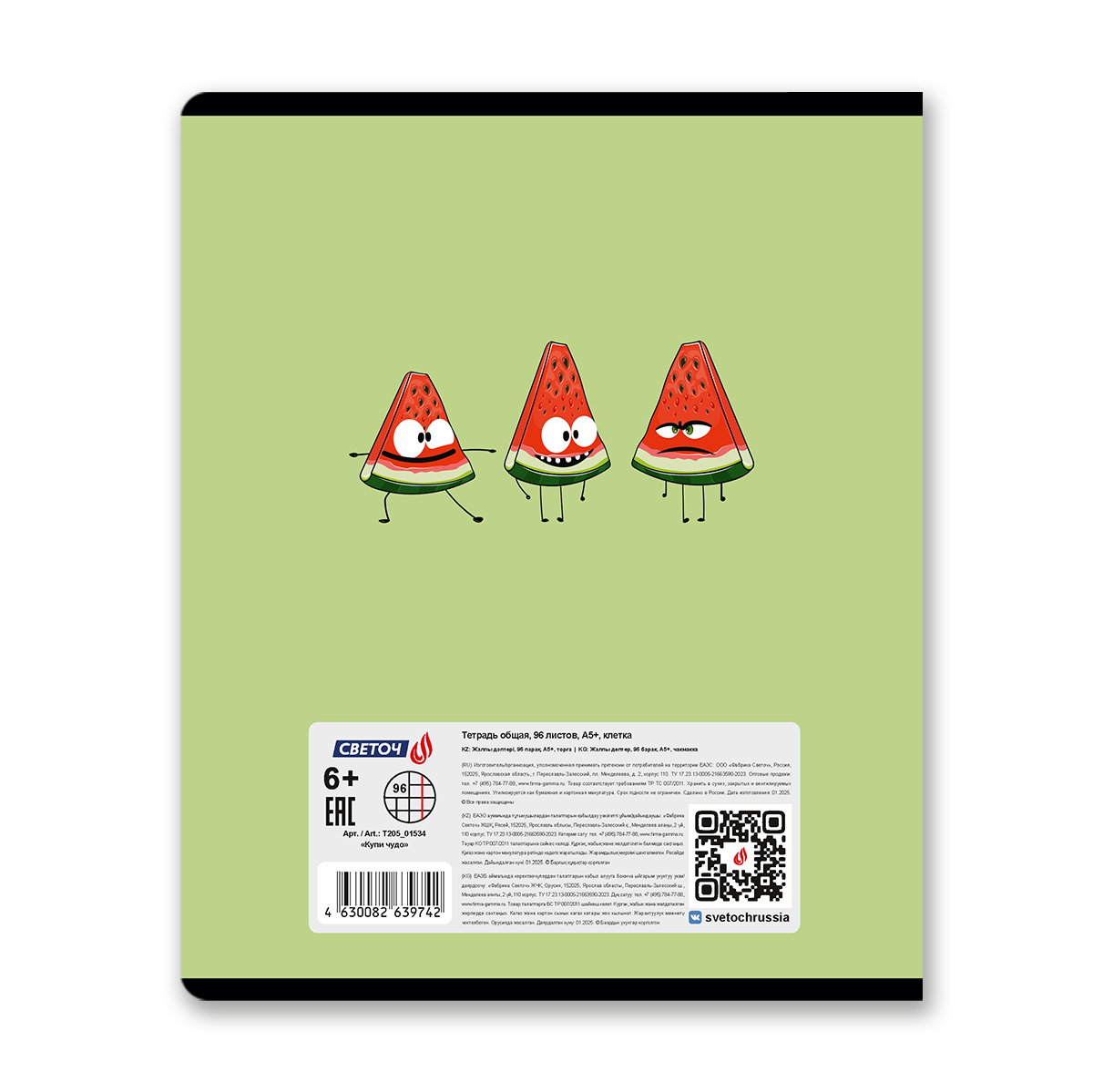 Тетрадь ученическая общая, твин лак, A5 96 л. на скобе 65 г/м², белизна 100% 5 шт клетка, 01534 Купи чудо, Светоч Т205