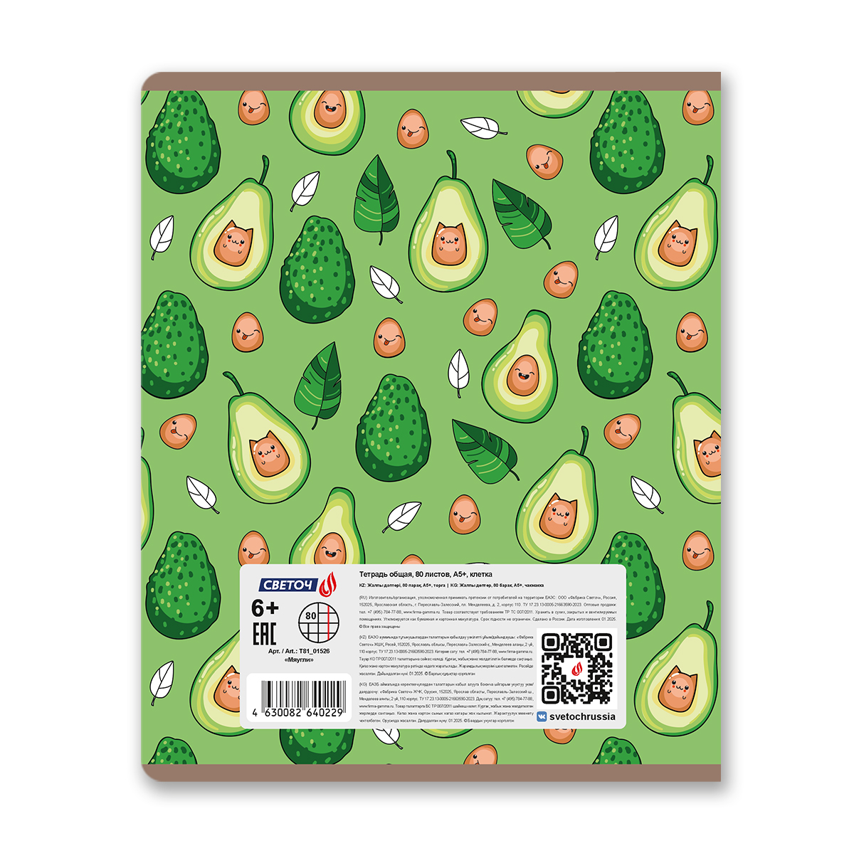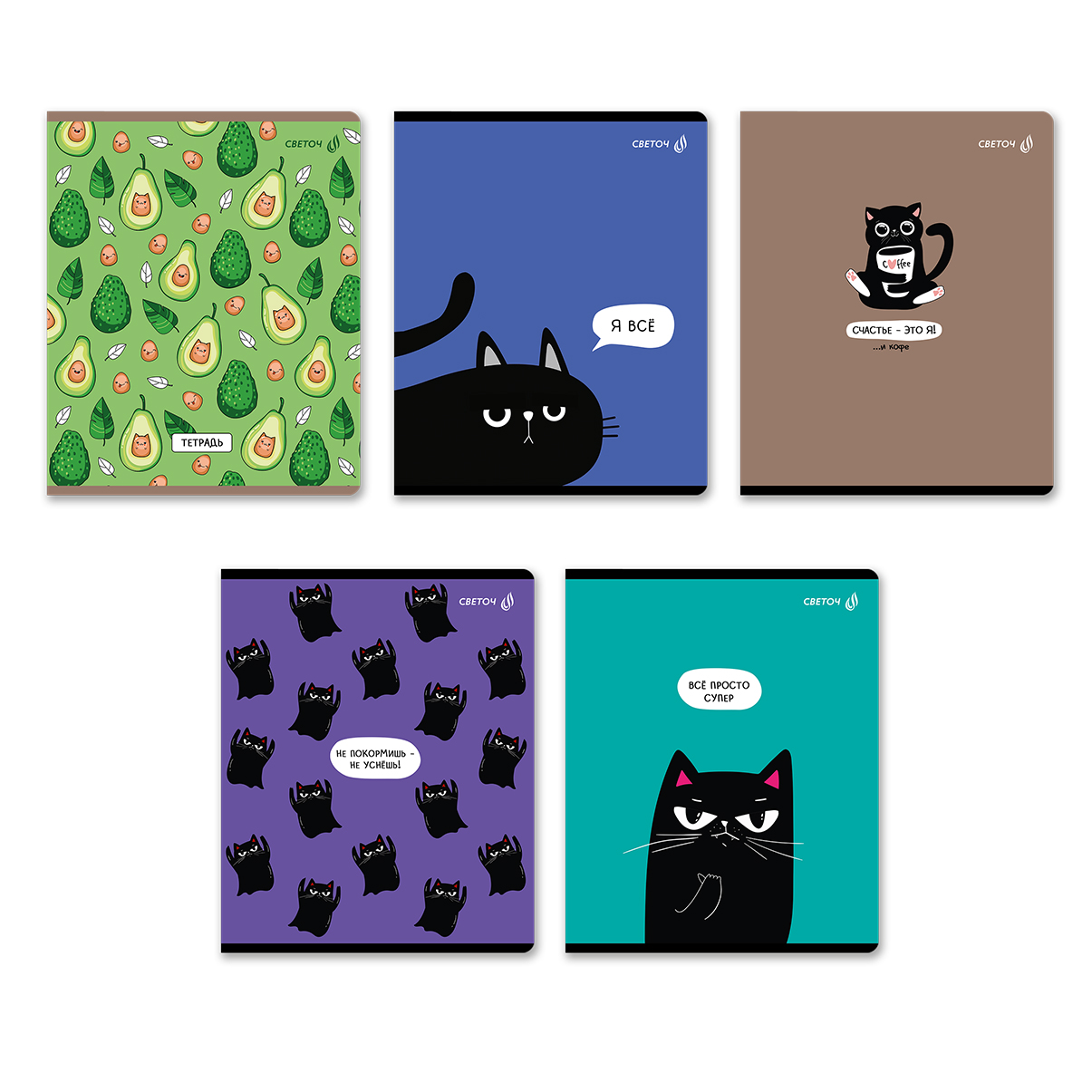 Тетрадь ученическая общая, выборочный лак, A5 80 л. на скобе 65 г/м², белизна 100% 5 шт клетка, 01526 Мяугли, Светоч Т81