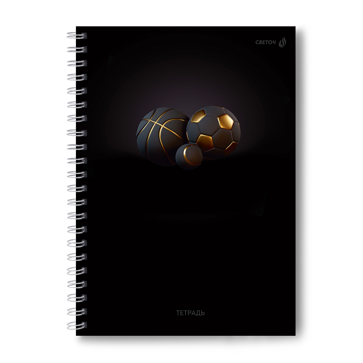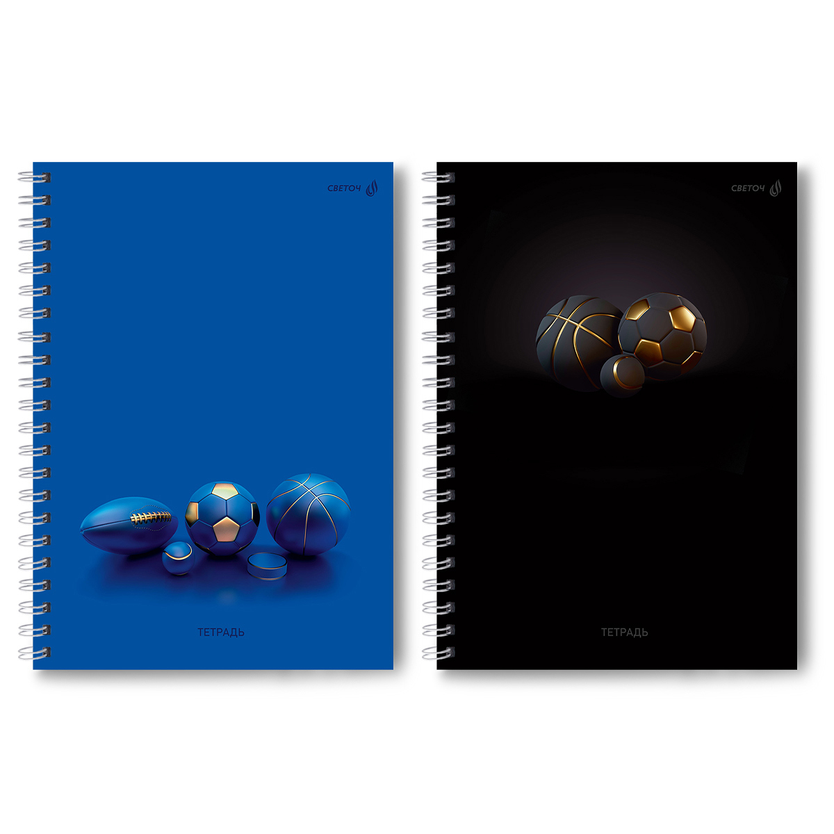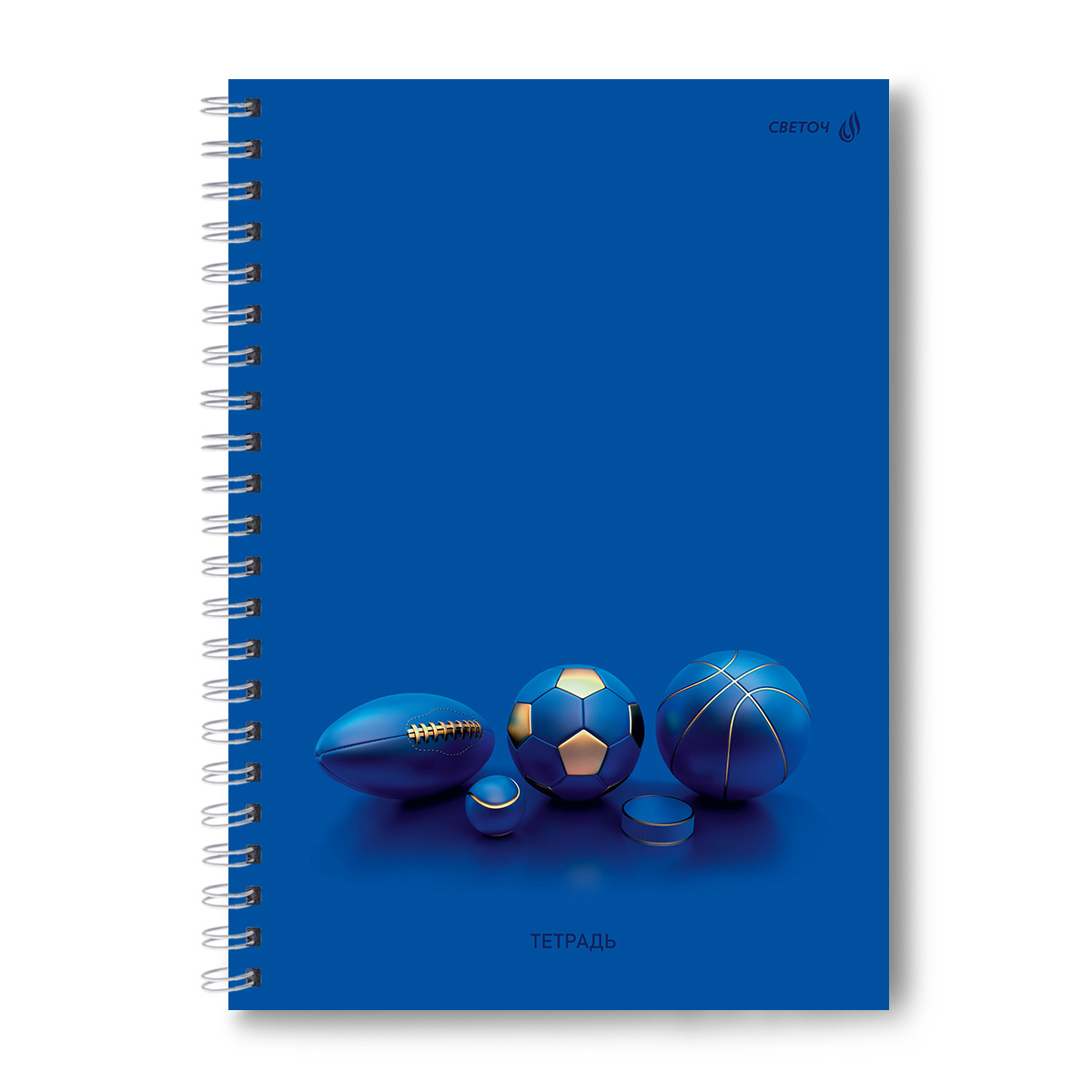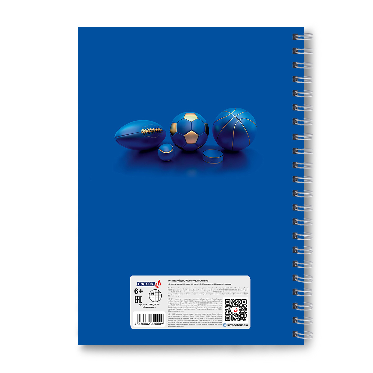 Тетрадь ученическая общая, выборочный УФ лак, A4 96 л. на гребне 65 г/м², белизна 100 %, 4 шт, клетка, 01259 Всем спорт, Светоч Т132
