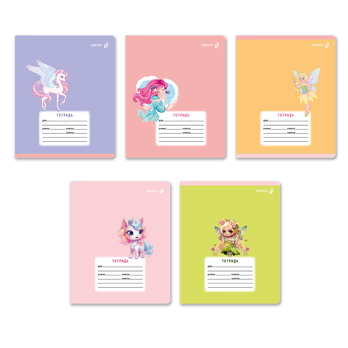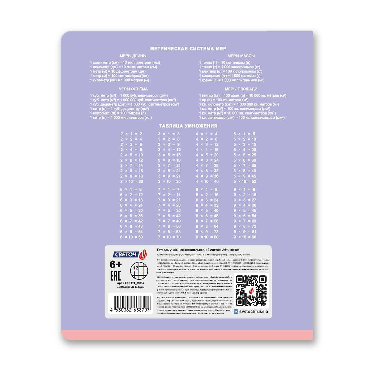Тетрадь ученическая школьная A5 12 л. на скобе 65 г/м², белизна 100% 25 шт клетка, 01394 Волшебные герои, Светоч Т74