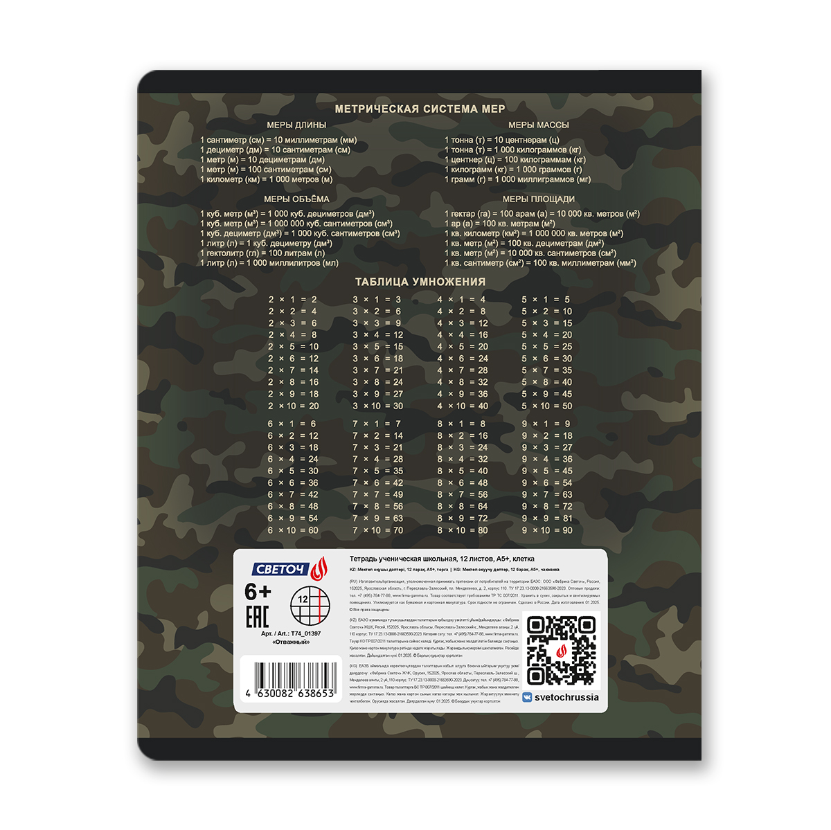 Тетрадь ученическая школьная A5 12 л. на скобе 65 г/м², белизна 100% 25 шт клетка, 01397 Отважный, Светоч Т74