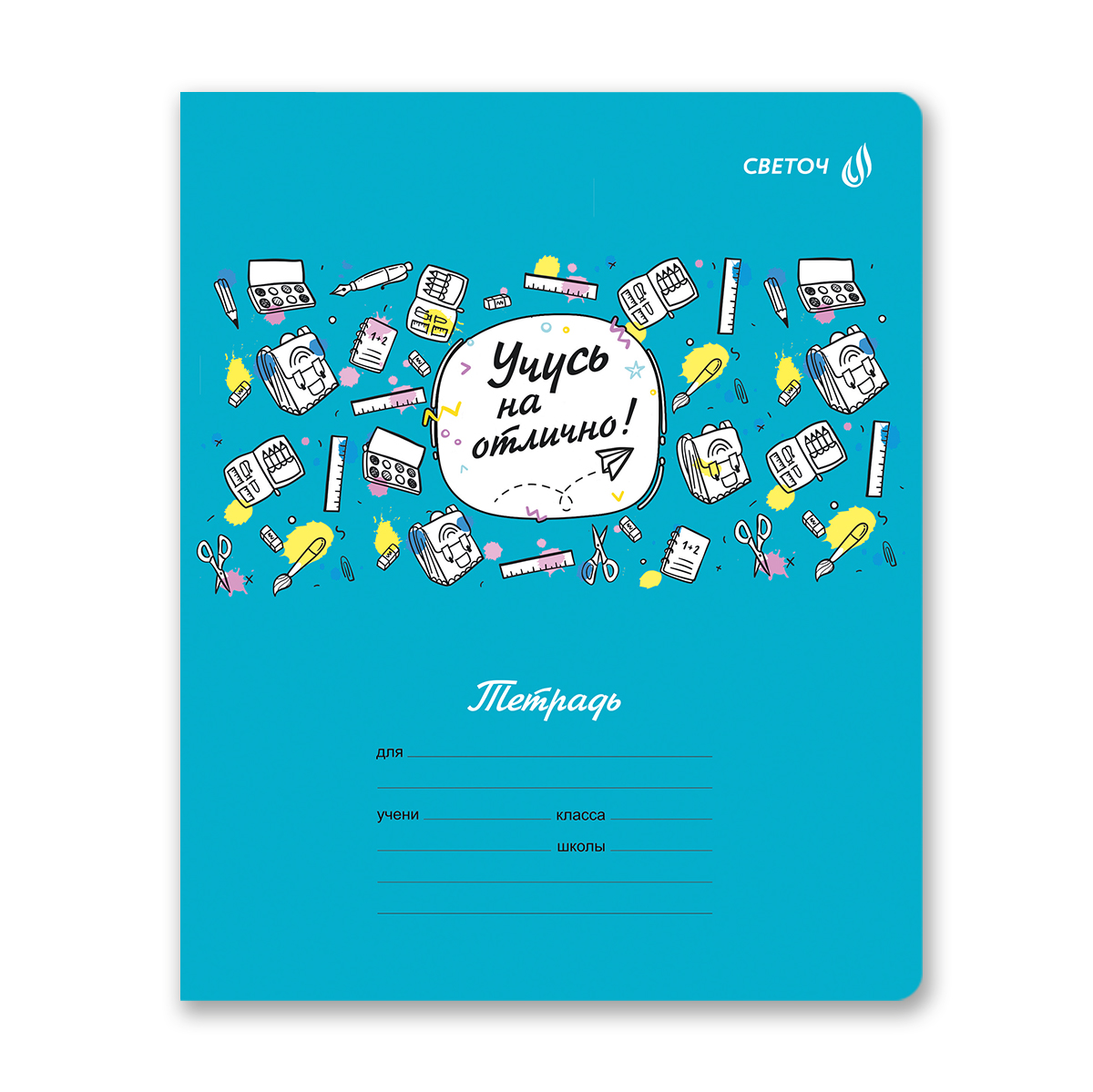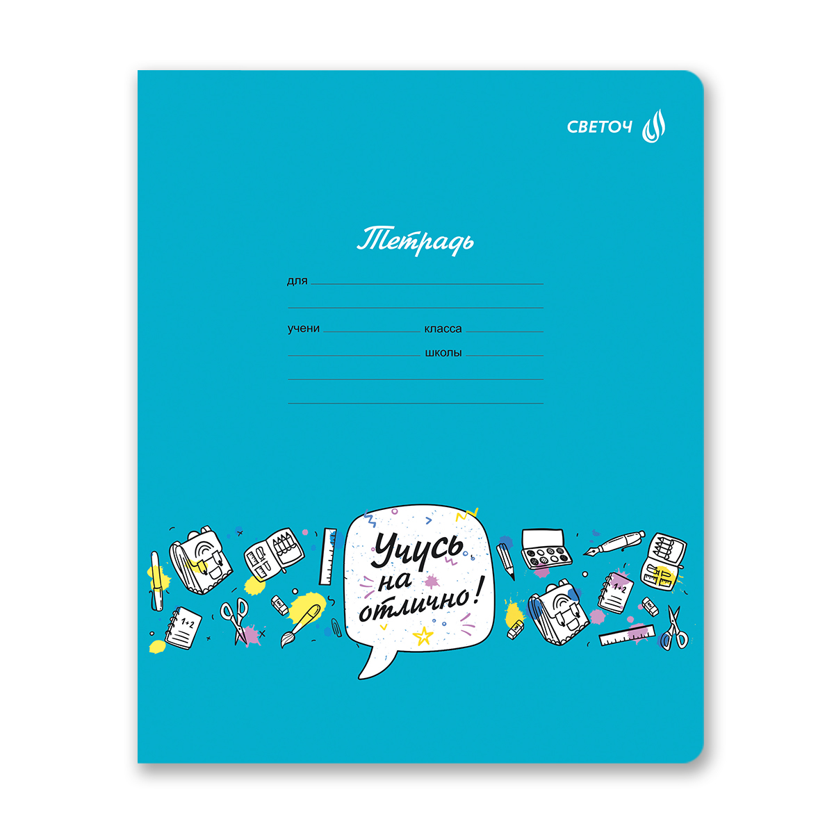 Тетрадь А5 формата, 12 листов идеально подойдет для школьников любого года обучения, используется для письма шариковыми, гелевыми и капиллярными ручками. Внутренний блок изготовлен из качественной офсетной бумаги плотностью 65 г/кв. м, 100% белизны. Обложка из мелованного картона плотностью 190 г/кв. м. Линовка - клетка, красные поля. Вид скрепления - скоба.