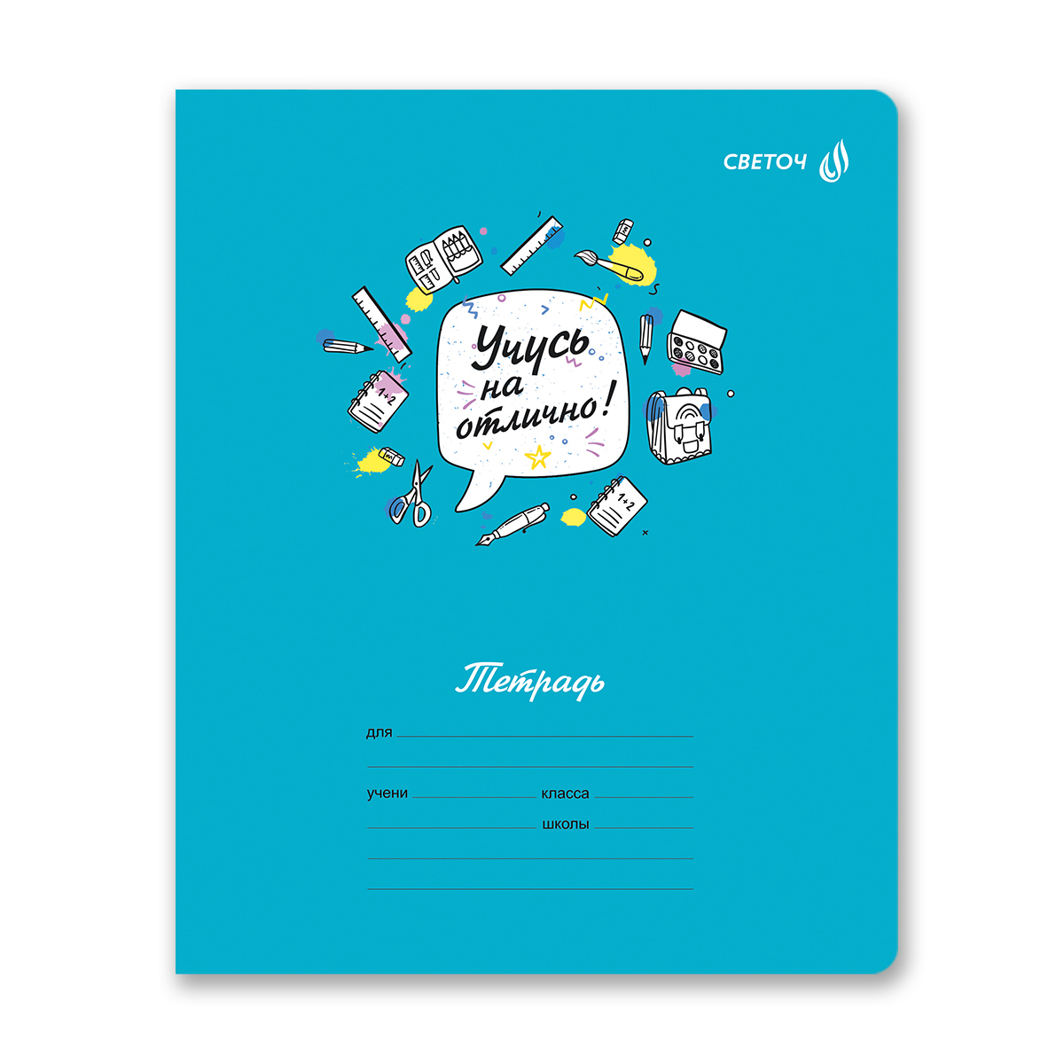 Тетрадь ученическая школьная A5 12 л. на скобе 65 г/м², белизна 100% 25 шт клетка, 01403 Отличник, Светоч Т74