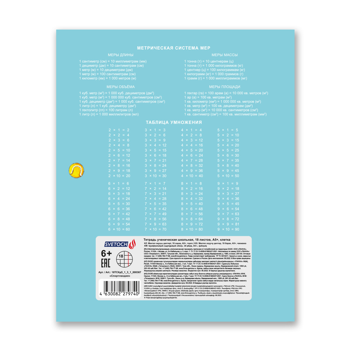 Тетрадь ученическая школьная A5+ 18 л. на скобе, 20 шт, клетка, 000367 Спортландия, Светоч 18ТСКд5_1_3_1