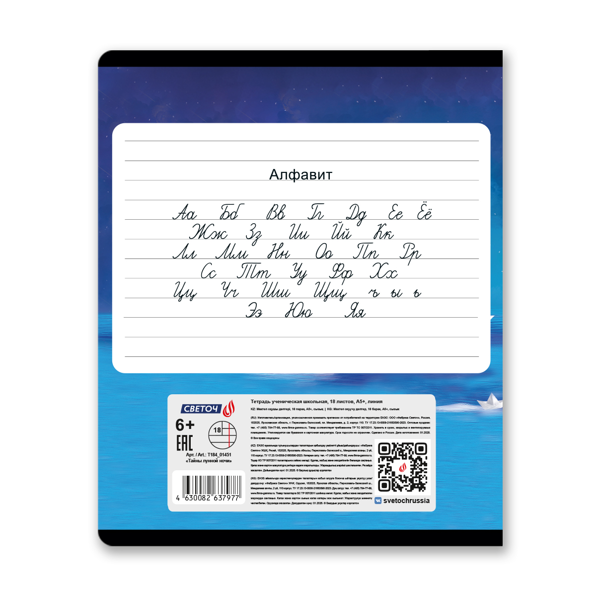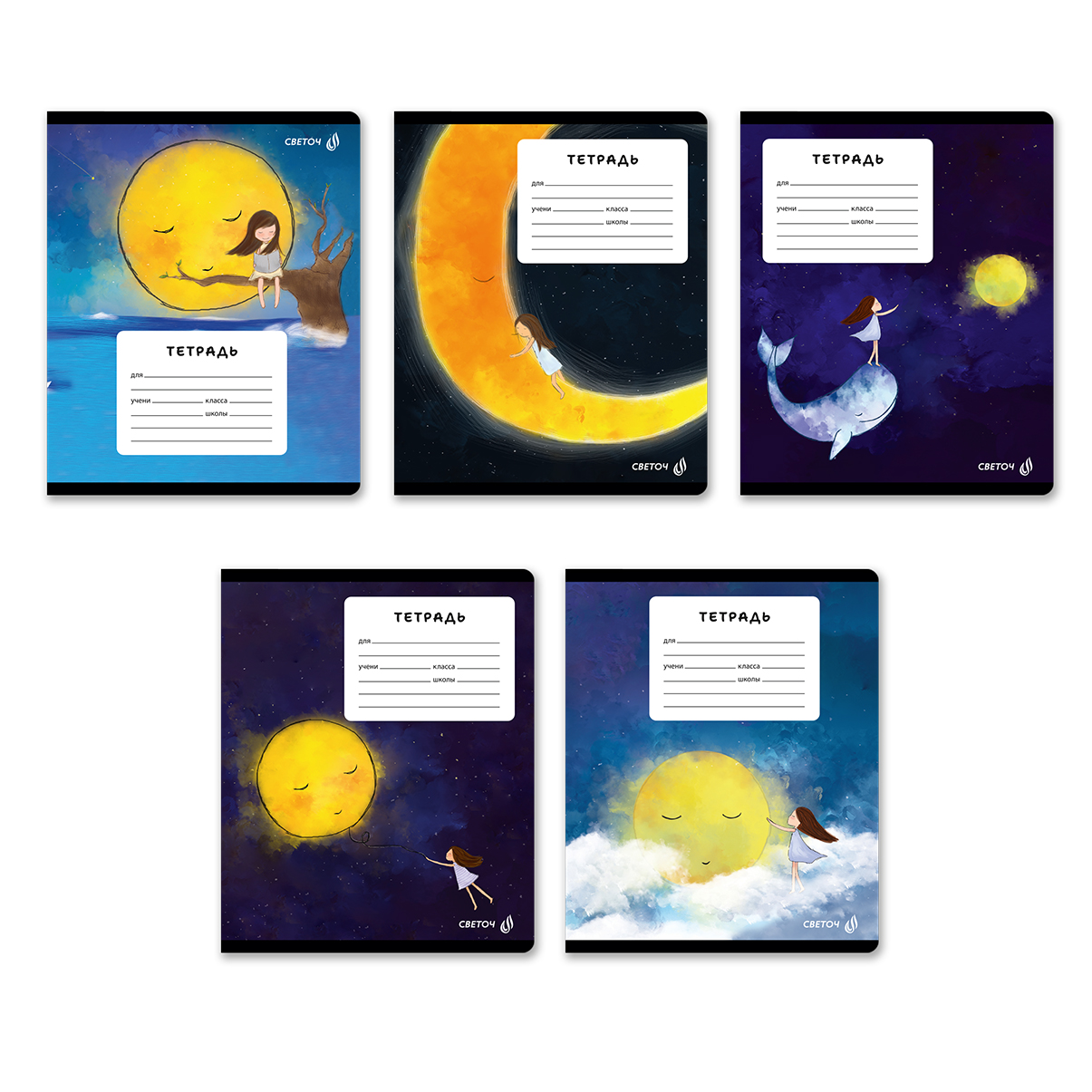 Тетрадь ученическая школьная, A5 18 л. на скобе 65 г/м², белизна 100% 20 шт линия, 01451 Тайны лунной ночи, Светоч Т184