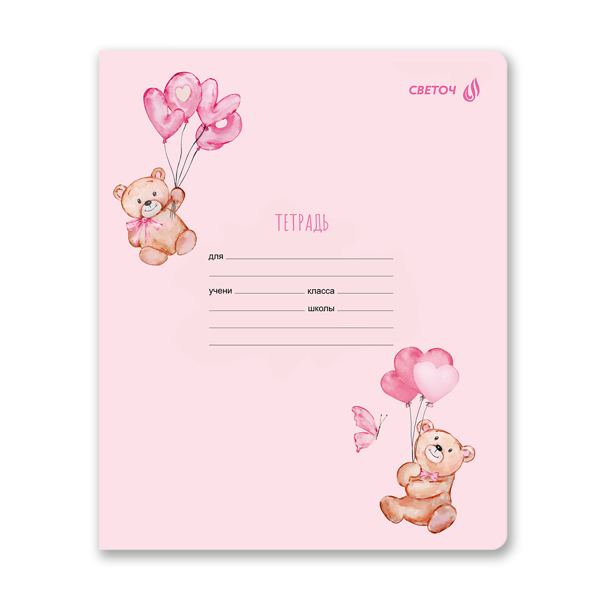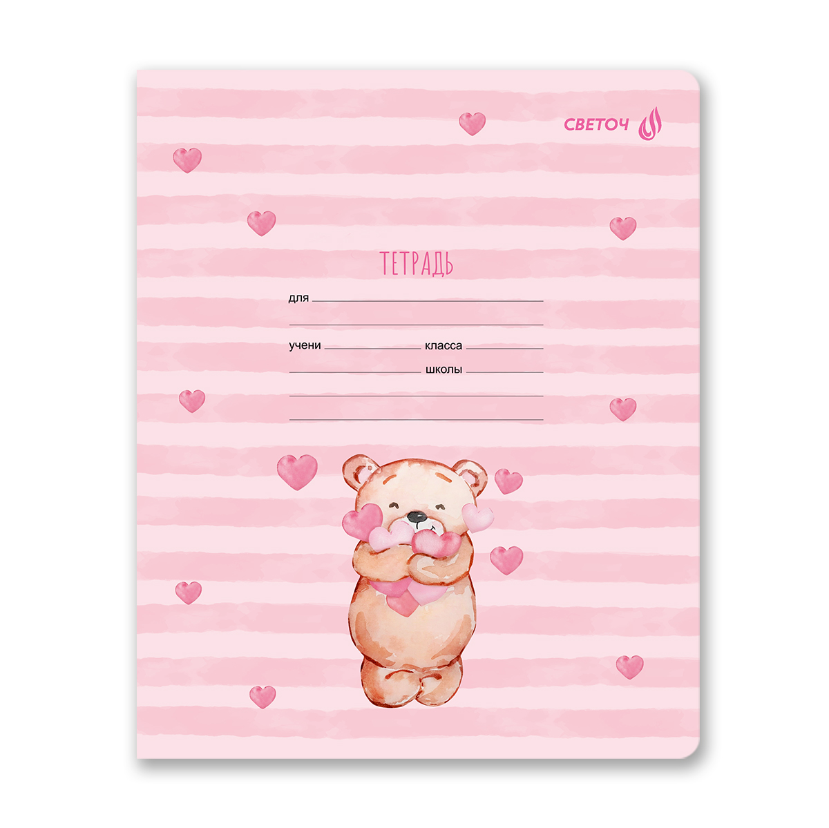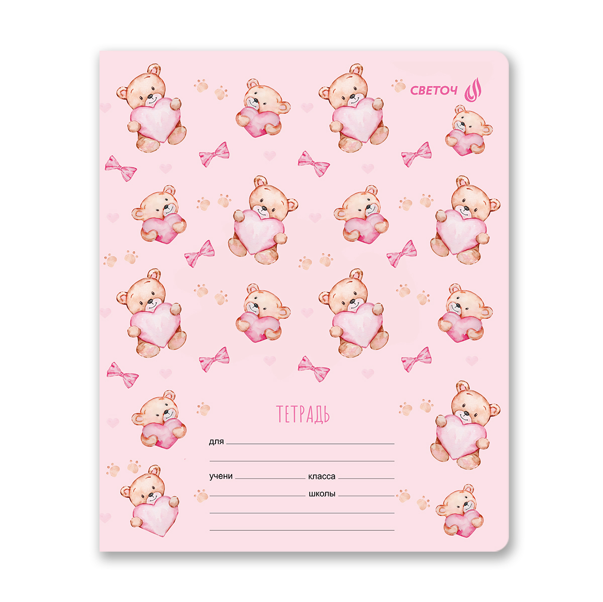 Тетрадь ученическая школьная, блёстки, A5 12 л. на скобе 65 г/м², белизна 100% 25 шт клетка, 01408 Мишутка, Светоч Т168