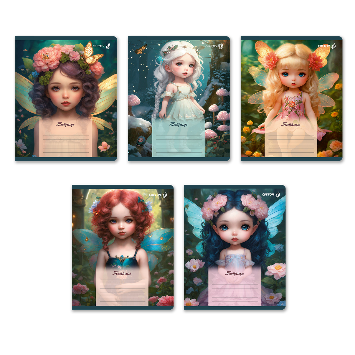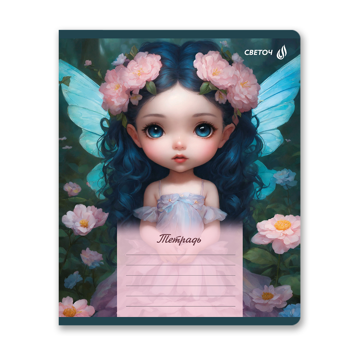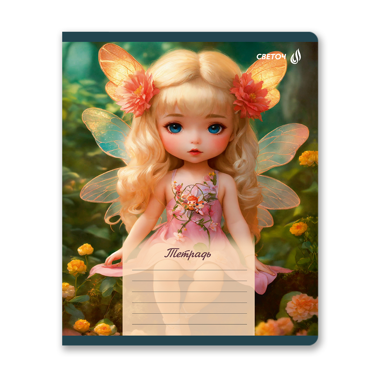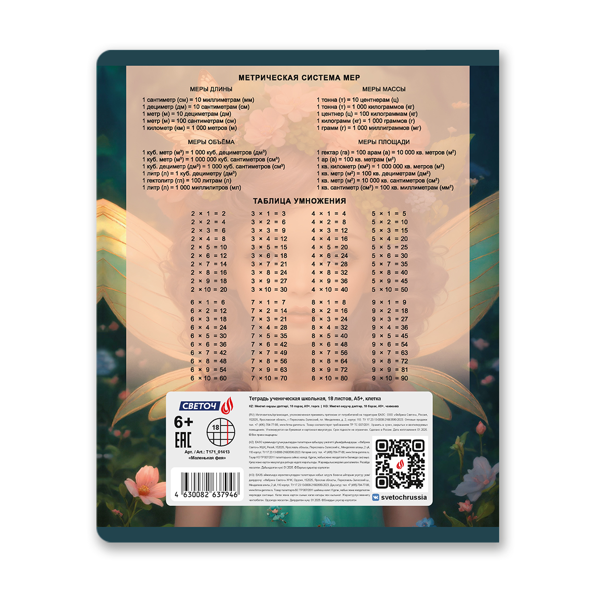 Тетрадь ученическая школьная, блёстки, A5 18 л. на скобе 65 г/м², белизна 100% 20 шт клетка, 01413 Маленькая фея, Светоч Т171