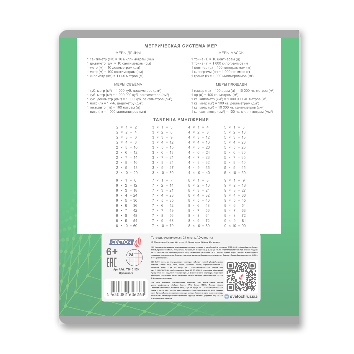 Тетрадь А5+ формата, 24 листа идеально подойдет для школьников любого года обучения, используется для письма шариковыми, гелевыми и капиллярными ручками.