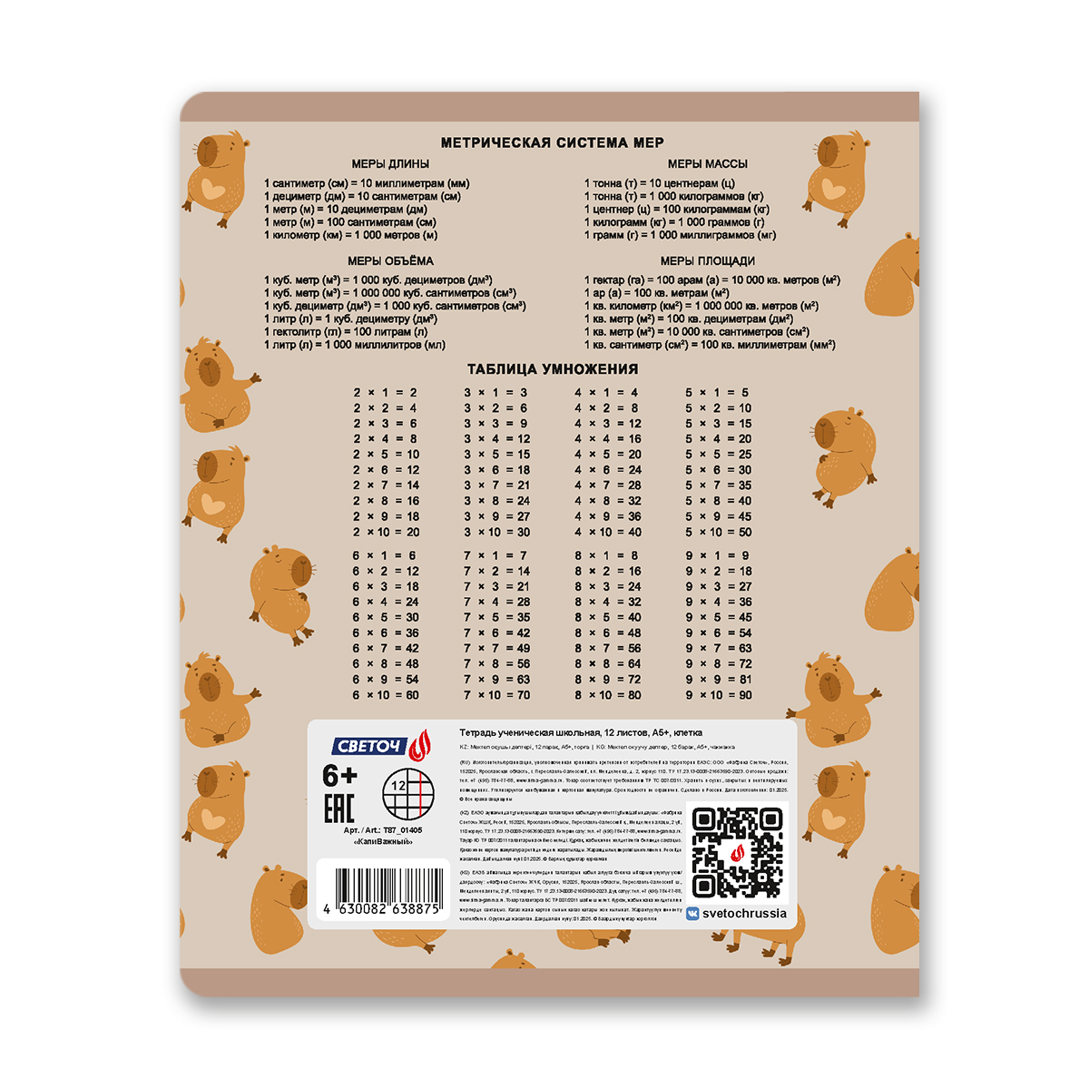 Тетрадь ученическая школьная, выборочный лак, A5 12 л. на скобе 65 г/м², белизна 100% 25 шт клетка, 01405 КапиВажный, Светоч Т87