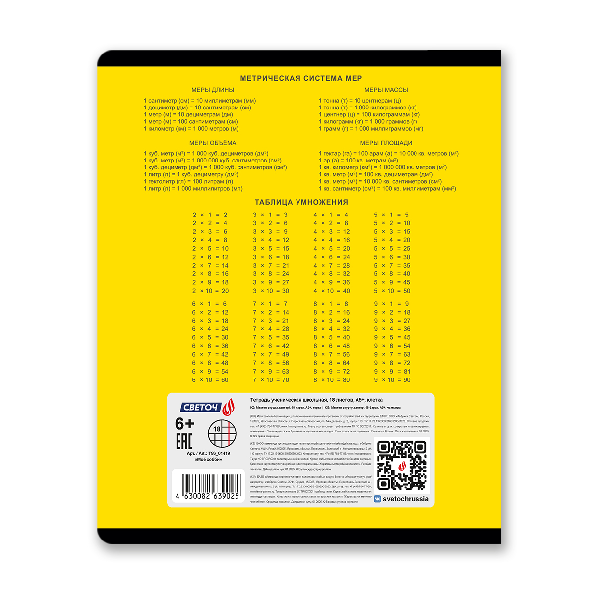 Тетрадь ученическая школьная, выборочный лак, A5 18 л. на скобе 65 г/м², белизна 100% 20 шт клетка, 01419 Моё хобби, Светоч Т86