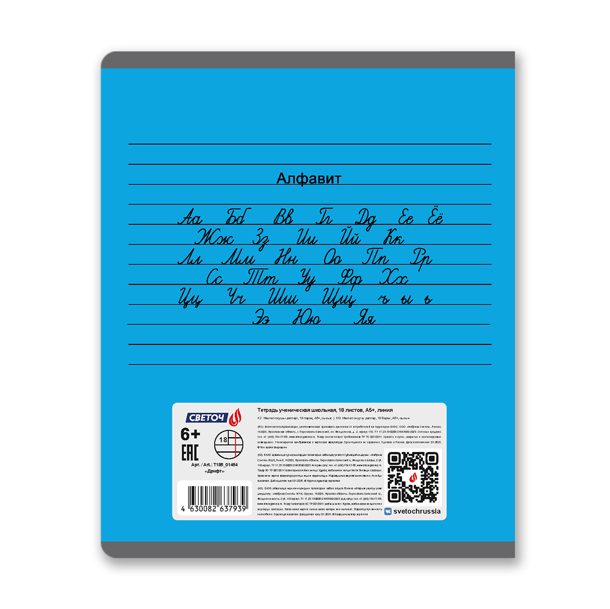 Тетрадь ученическая школьная, выборочный лак, A5 18 л. на скобе 65 г/м², белизна 100% 20 шт линия, 01454 Дрифт, Светоч Т185