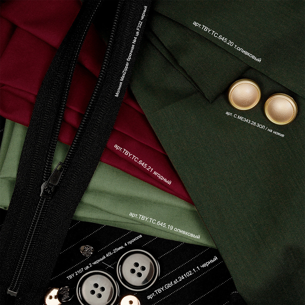 4454444.png   Для подбора цвета и других параметров товаров (фурнитуры) рекомендуется приобретать карты цветов либо небольшие тестовые партии. При подготовке к отшиву коллекции или партии изделий рекомендуем приобретение тестовой партии фурнитуры для пошива тестовых образцов с последующим контролем качества готовых изделий, это позволит избежать возможных сложностей, связанных с индивидуальными особенностями фурнитуры, поведением швейного оборудования и сочетаемости материалов и т.д.
