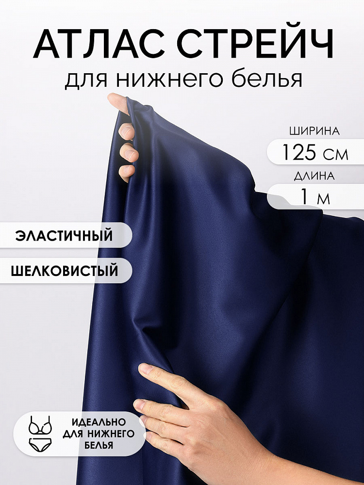 Атлас стрейч для нижнего белья 107 г/м², 125 см / 1 метр, 0180 цв.061(05) темно-синий
