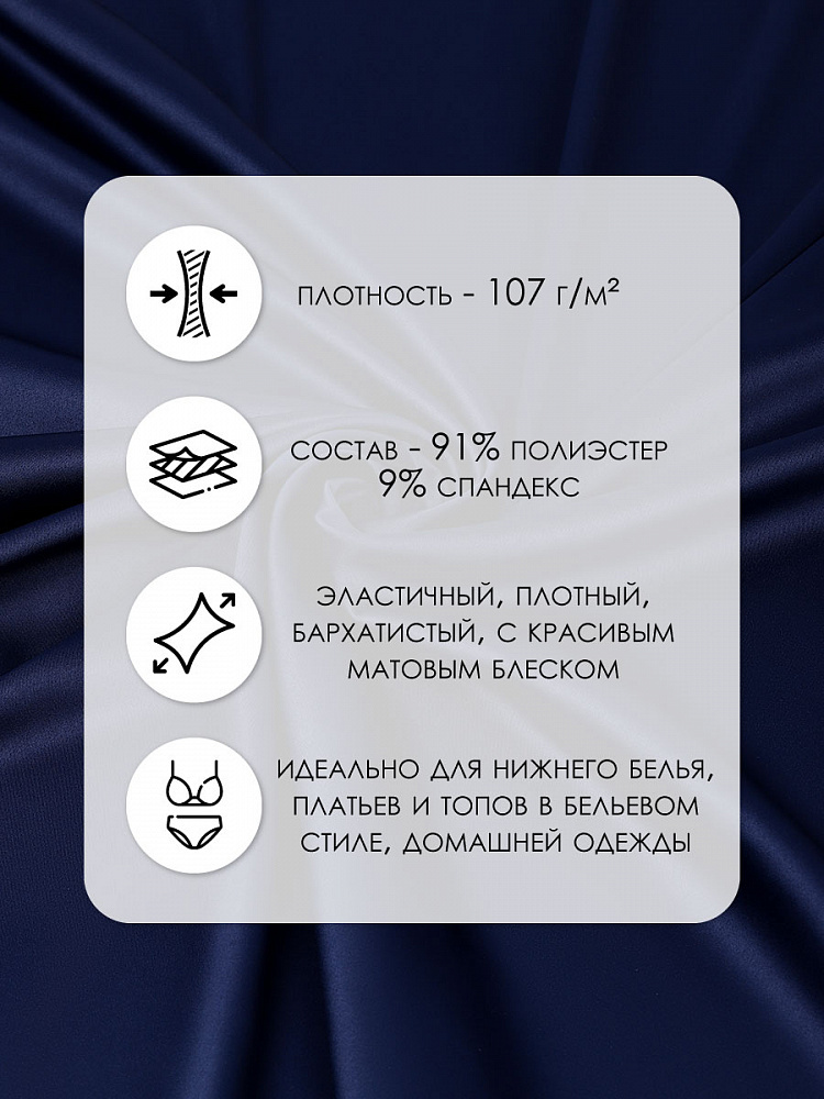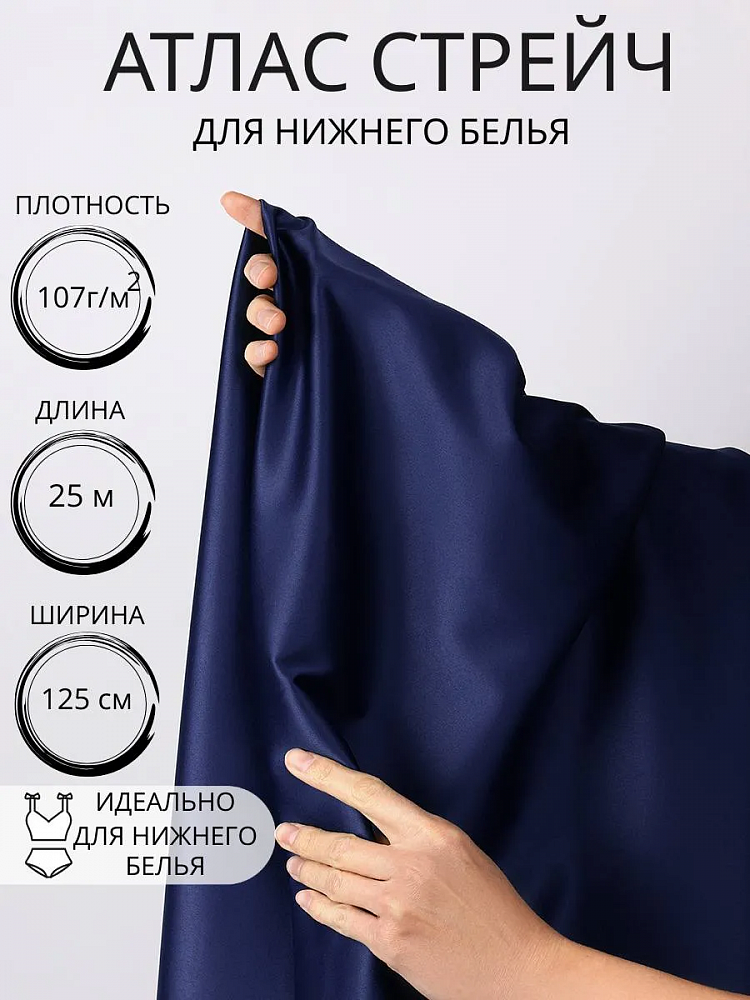 Атлас стрейч для нижнего белья 107 г/м², 125 см / 25 метров, 0180 цв.061(05) темно-синий
