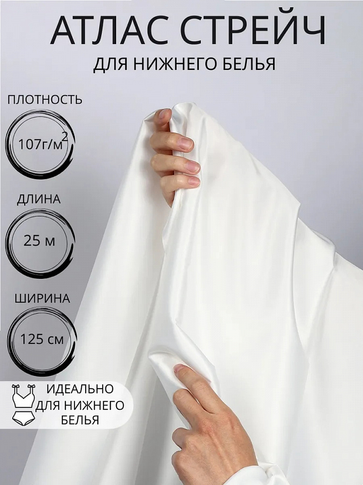 Атлас стрейч для нижнего белья 107 г/м², 125 см / 25 метров, 0180 цв.белый