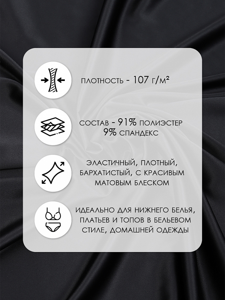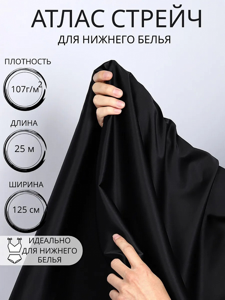 Атлас стрейч для нижнего белья 107 г/м², 125 см / 25 метров, 0180 цв.черный