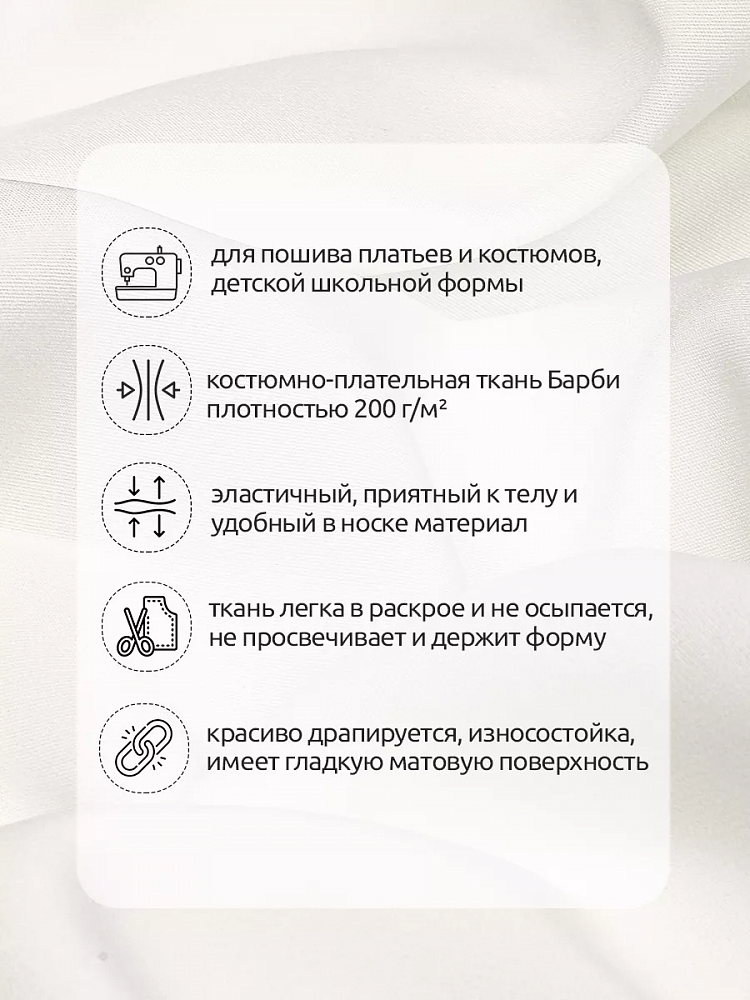 Барби 200 г/м², 150 см / 2 метра, TBY.Br.9.2, цв.белый