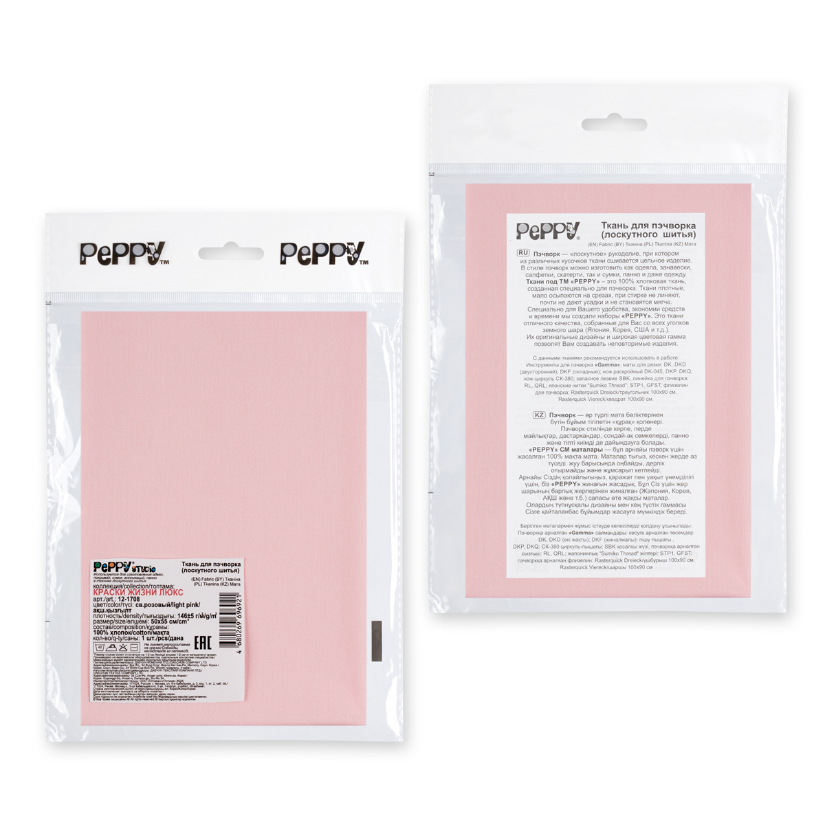 Ткань для пэчворка Peppy Краски жизни Люкс 100х112 см, 140±5 г/м², 12-1708 св.розовый