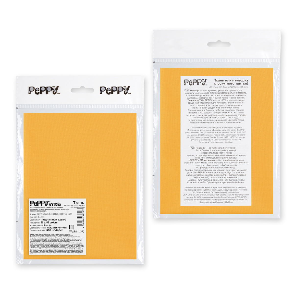 Ткань для пэчворка Peppy Краски жизни Люкс 100х112 см, 140±5 г/м², 14-0952 гр.желтый