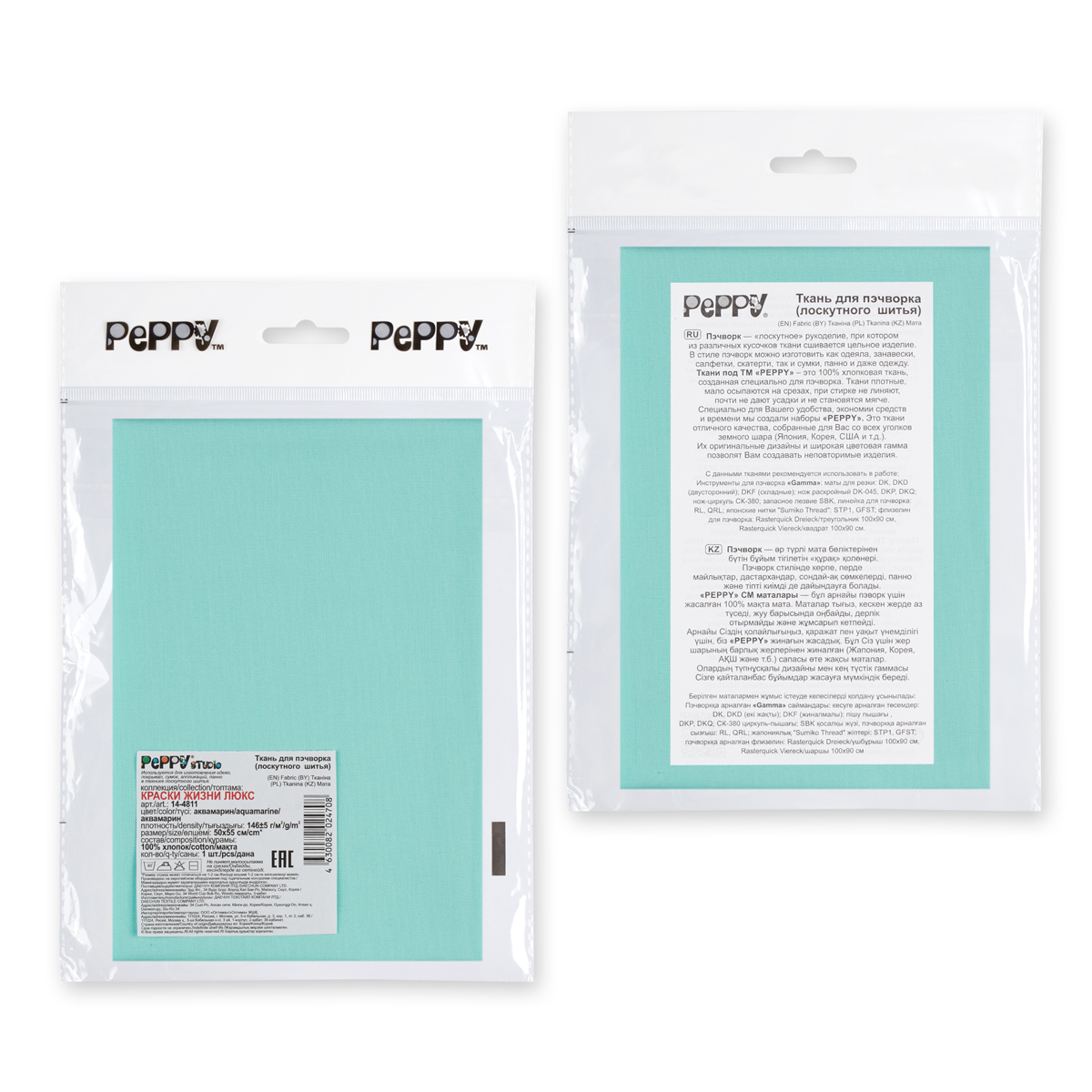 Ткань для пэчворка Peppy Краски жизни Люкс 100х112 см, 140±5 г/м², 14-4811 аквамарин