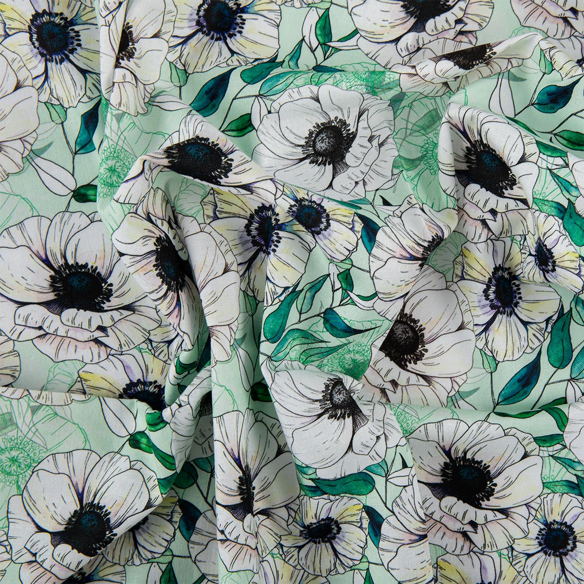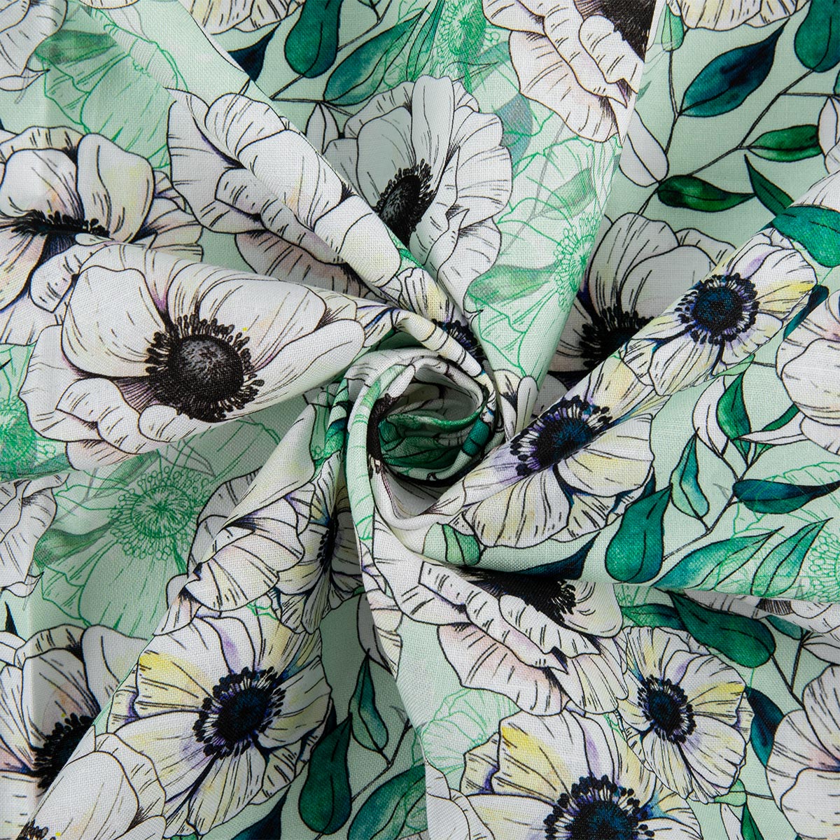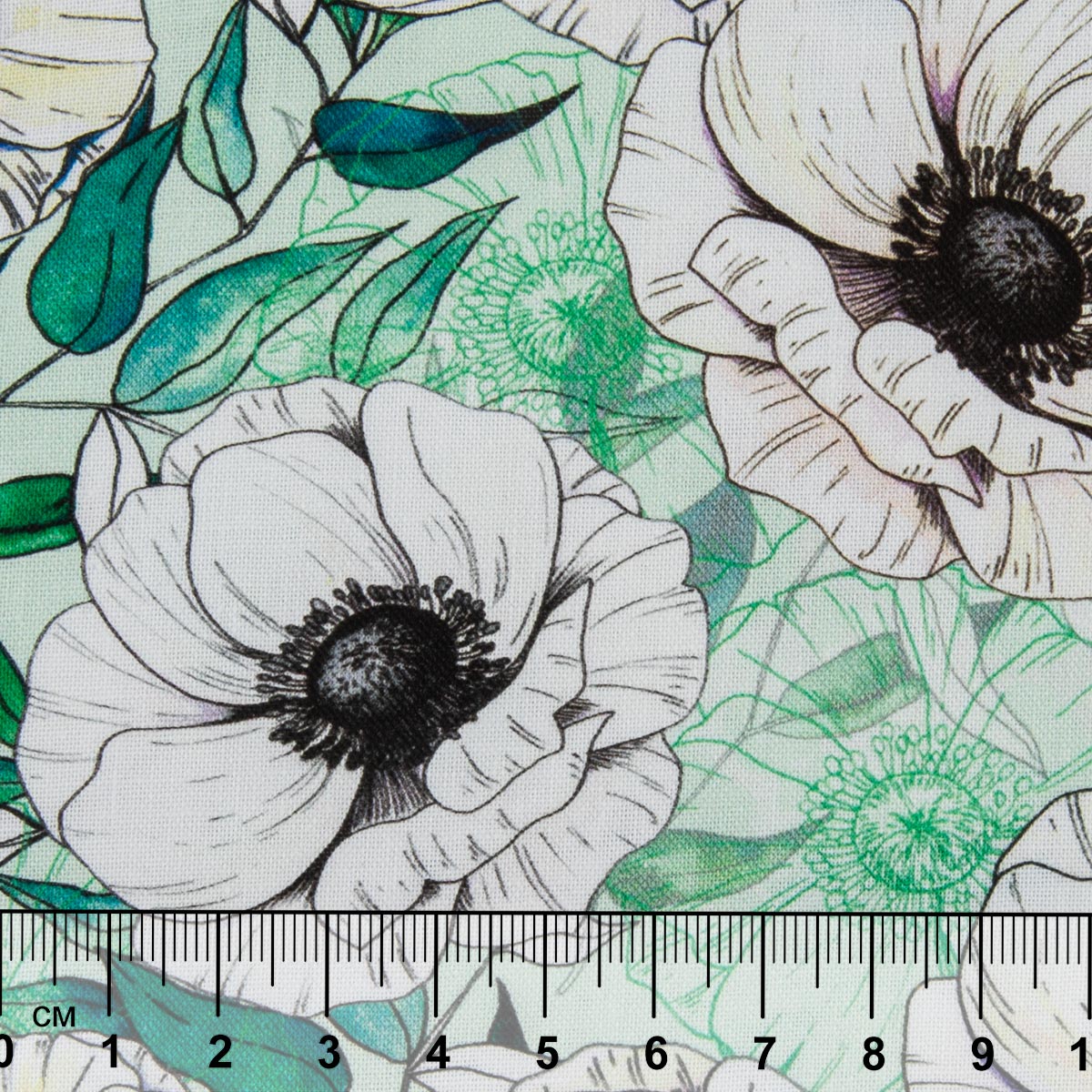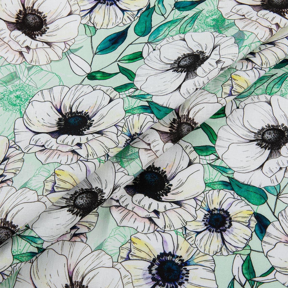 Ткань для пэчворка Peppy Цветущие анемоны 50х55 см, 140±5 г/м², ЦА-02 зеленый