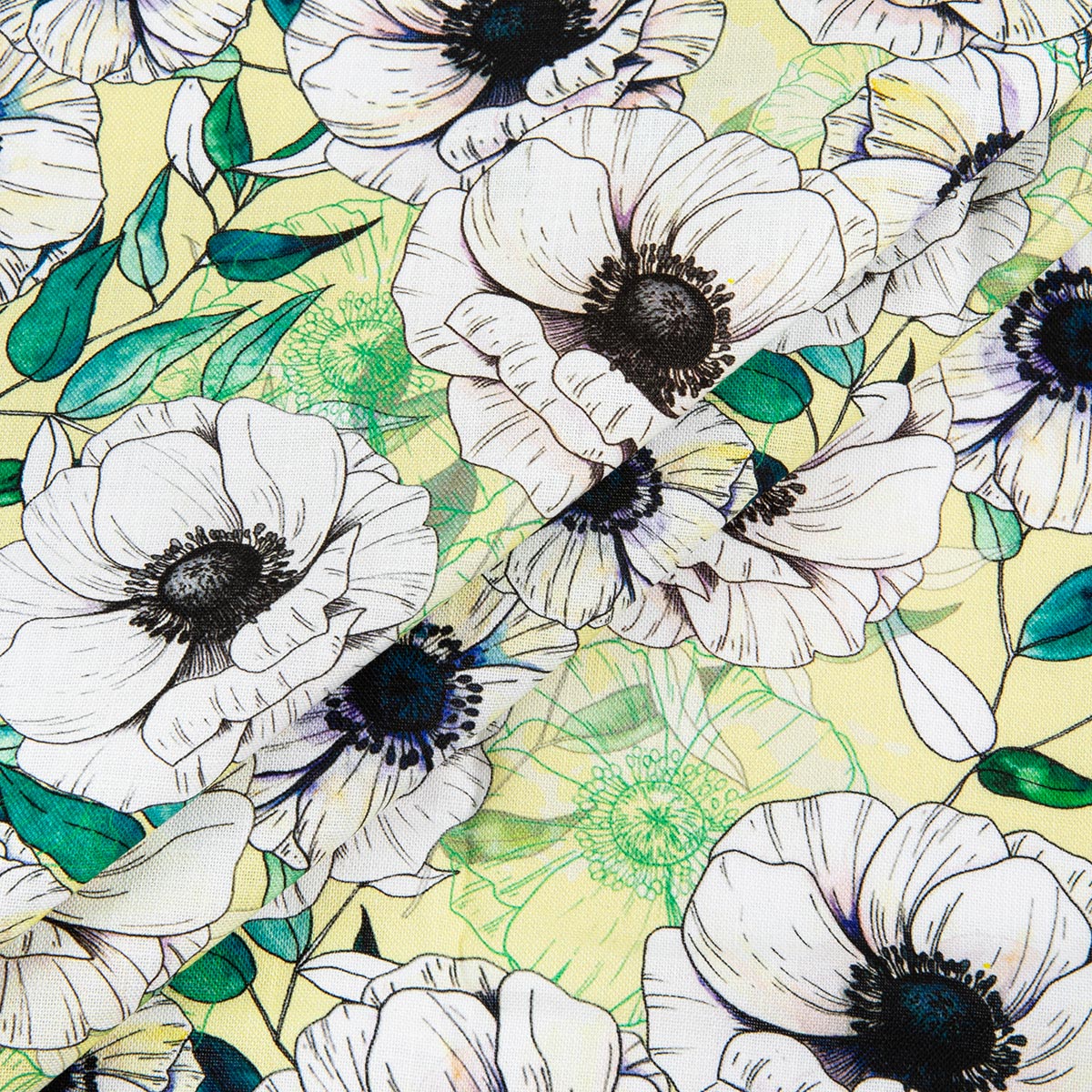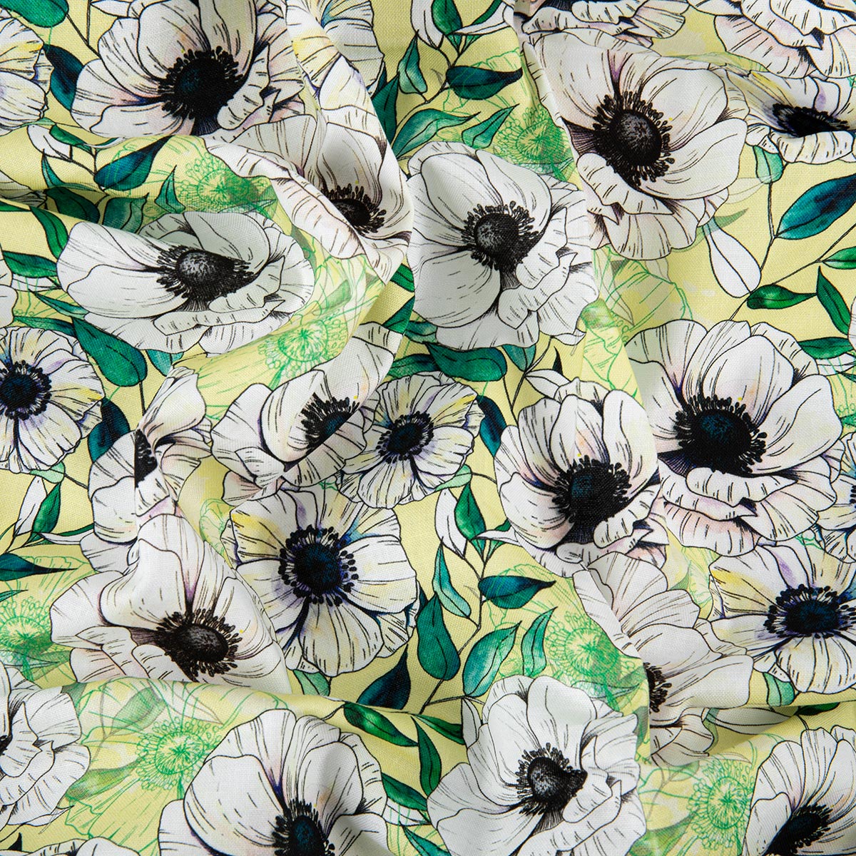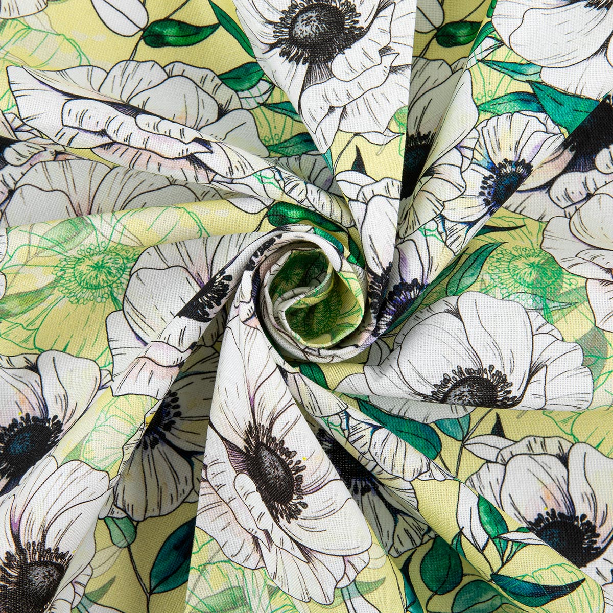 Ткань для пэчворка Peppy Цветущие анемоны 50х55 см, 140±5 г/м², ЦА-04 желтый
