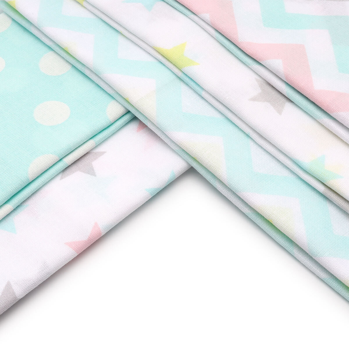 Ткань для рукоделия Звездочки-зигзаги, хлопок, размер 50х50 см, набор, 5 шт, голубой