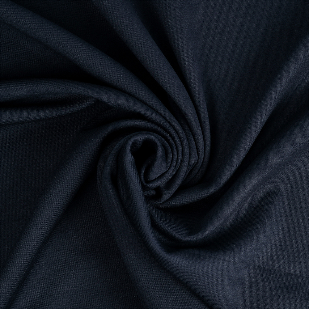 Трикотажное вискозное полотно Джерси средней плотности — эластичный, гигроскопичный, приятный к телу и удобный в носке материал. Натуральная вискоза в составе обеспечивает хороший воздухообмен, сохранение тепла в прохладную погоду, в жаркую — ощущение прохлады синтетические волокна уменьшают степень сминаемости изделий из Джерси. Поверхность гладкая, одинаковая с двух сторон. Ткань Джерси применяется при изготовлении таких изделий, как: платья-футляр и офисные костюмы, повседневные брюки и юбки свободного или облегающего кроя, полуспортивные костюмы, а также для пошива свитшотов, худи и бомберов. Перед пошивом рекомендуется предварительная обработка: стирка/замачивание/декатировка. Возможна усадка до 5% при первой стирке. Допускается машинная стирка при температуре не выше 30 градусов в деликатном режиме с помощью моющих средств без агрессивных компонентов в составе.